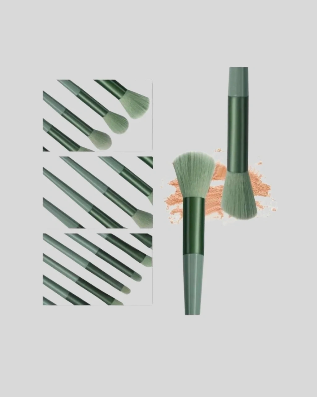 Makyaj fırça seti, her makyaj tutkununun ihtiyaç duyduğu yumuşak, dayanıklı ve kullanışlı fırçaları bir araya getirir. 13 parçadan oluşan bu profesyonel set; pudra, allık, fondöten, far, eyeliner ve dudak makyajı için özel olarak tasarlanmıştır.Yüksek kaliteli sen kıllar, cilde nazikçe dokunarak pürüzsüz ve eşit bir uygulama sağlar. Cilt üzerinde rahatsızlık hissi yaratmadan ürünleri mükemmel biçimde dağıtır. Günlük makyajlarda ya da profesyonel uygulamalarda kusursuz sonuçlar elde etmek isteyen herkes için idealdir.