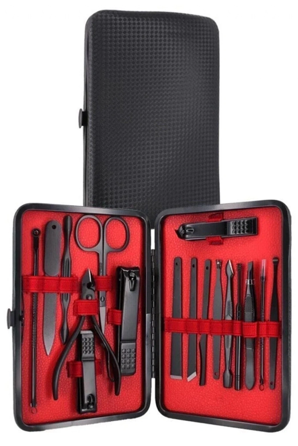 rün parçaları paslanmaz çelikten üretilmiş olup, el ve ayak bakımı için gereken tüm malzemeler mevcuttur.Güvenli sterilizasyon sağlar, kolay temizlenir, uzun ömürlüdür, korozyonu önler ve enfeksiyon riskini en aza indirir. Ayrıca keskinliği iyileştiren yeni nesil siyah kaymaz parlatma teknolojisi kullanılmıştır, bu estetiğin yanında kavramayı ve kullanımı kolaylaştırır. Set taşınabilir şık ve sağlam bir deri kaplama kutusu ile birliktedir, tek düğmeyle kolayca açılır. Aynı zamanda çok hafiftir, böylece her gün çantanızda taşıyabilir veya seyahatlerde yanınıza alabilirsiniz. Ürün suni serili kılıfı ile beraber gönderilir. Ürün içeriği
