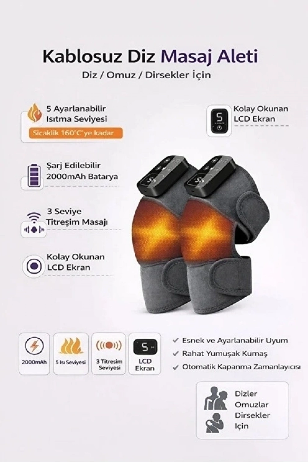 • 2 Adet Şarjlı Isıtmalı Diz Masaj Aleti – Titreşimli Fizyoterapi Dizlik | Diz Omuz Kol Bacak