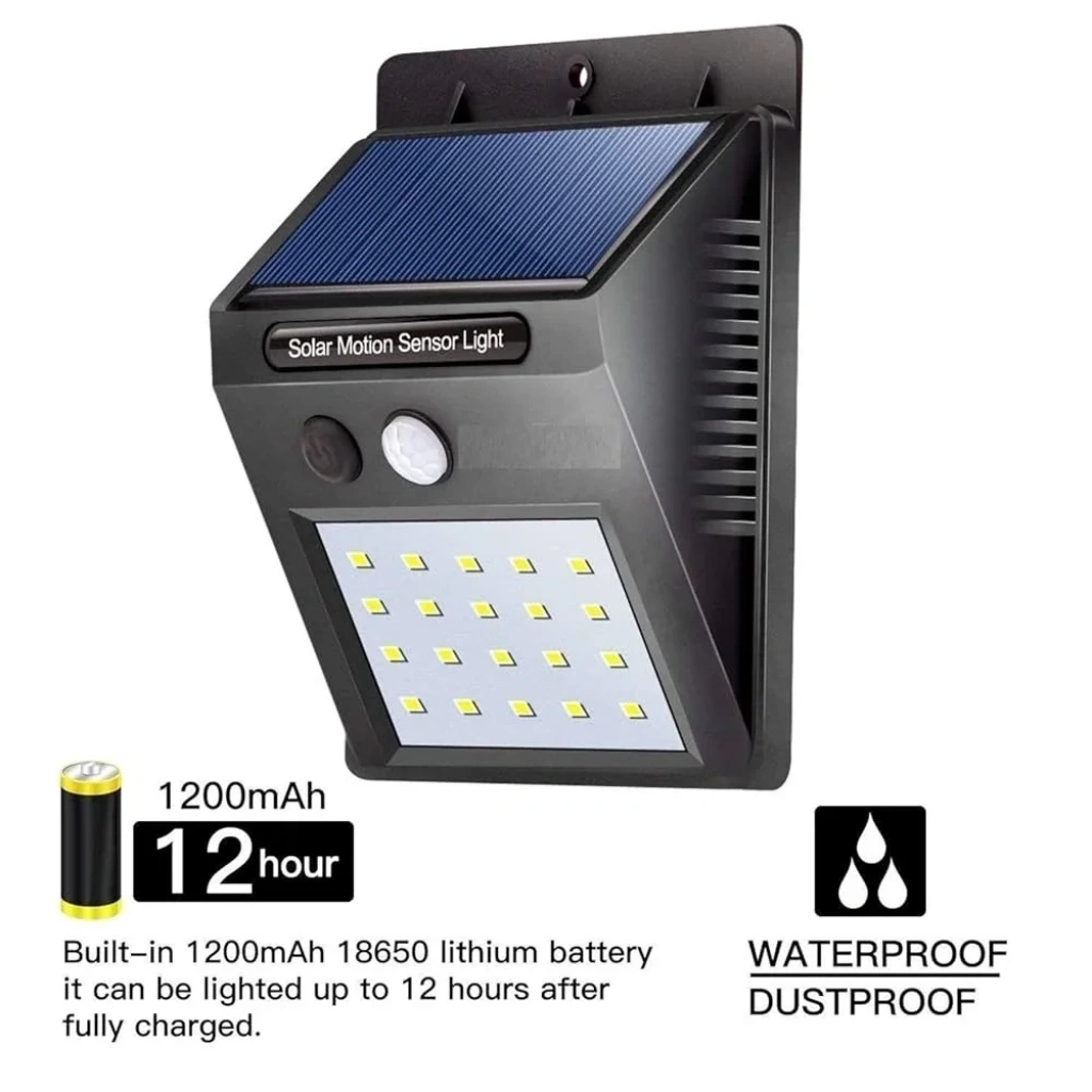 Bahçe balkon teras gibi dış mekanlarınız aydınlık ve dekoratif olması için güneş enerjili solar bahçe aydınlatma – solar lamba. Solar güneş enerjili bahçe aydınlatmanız sabahleyin güneş enerjisi ile kendini şarj eder, gece olunca sensörü sayesinde otomatik yanar. Balkonda , bahçede , pencerede , terasta kabloya gereksinim duymadan kolayca kullanabilirsiniz. Ürün Özellikleri Hareket sensörlüdür. Açma kapama tuşu vardır. Güneş enerjisi ile şarj olur. 20 led ışığı vardır.
