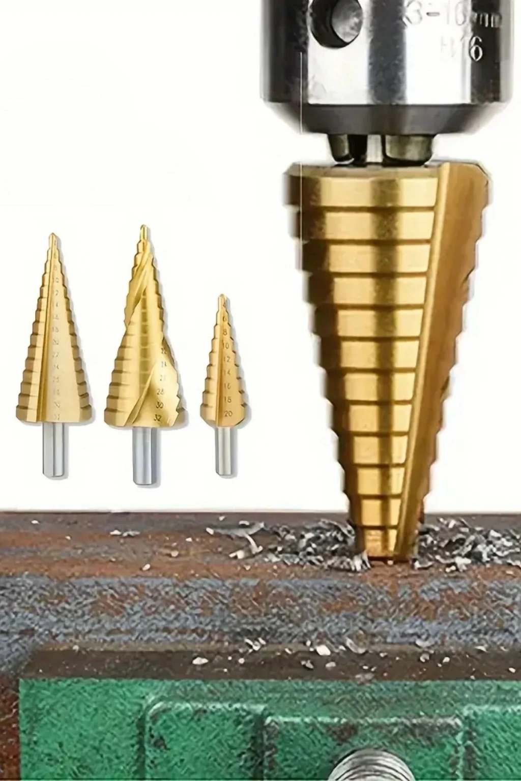 3 Parça Kademeli Matkap Ucu Paslanmaz Uç Alüminyum Sac Demir Delme Seti