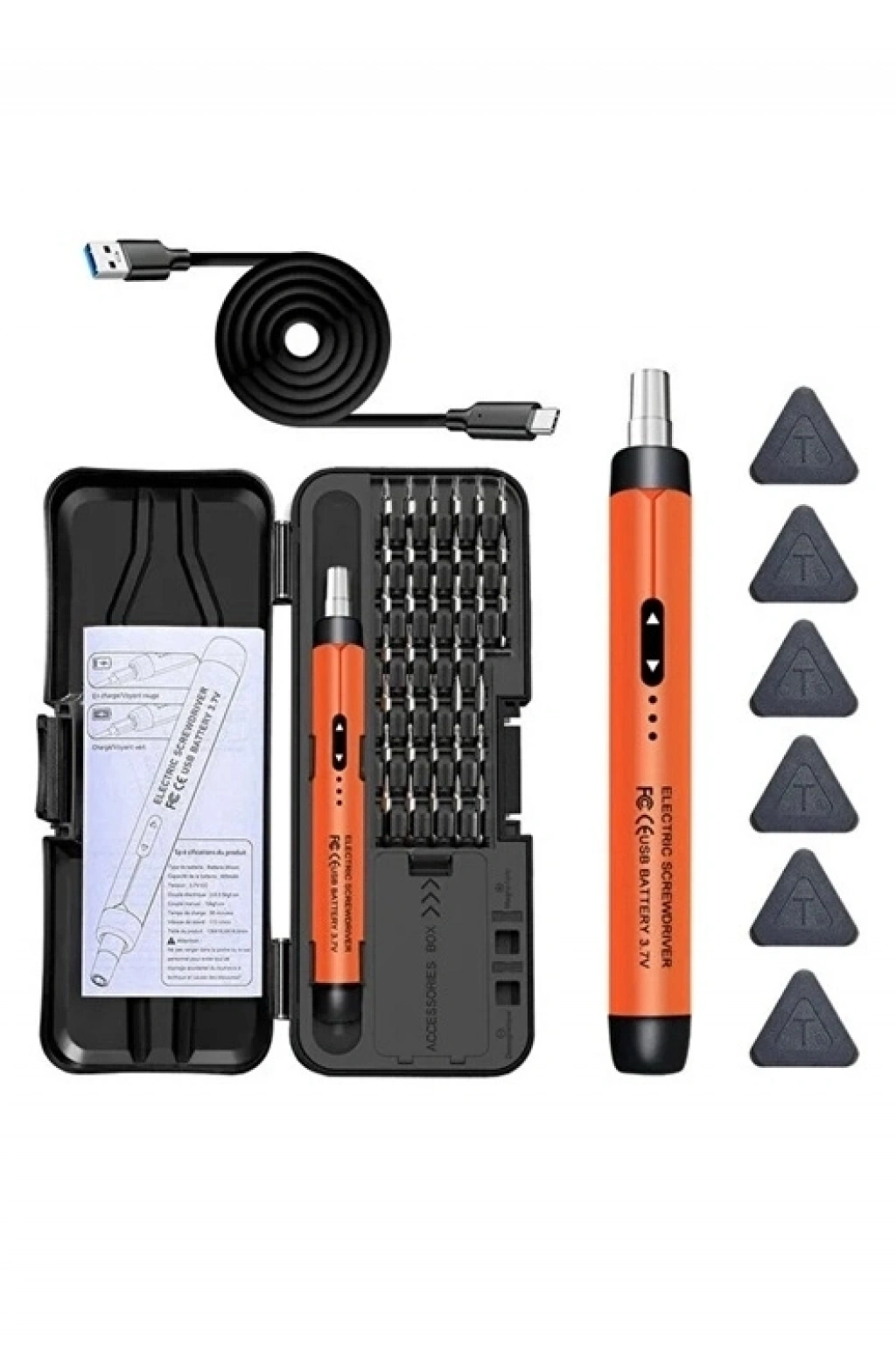 Güçlü Mikro Motor & Metal Dişli Sistem Yüksek iletkenliğe sahip bakır bobinli mikro motor Dayanıklı metal gearbox sistemi Stabil ve titreşimsiz çalışma Uzun ömürlü mekanik yapı Düşük direnç, yüksek verim 500 mAh Büyük Kapasiteli Lityum Batarya 3.7V güçlü Type-C hızlı şarj desteği Tek şarj ile yüzlerce vida sökme/takma LED şarj göstergesi Güçlü Manyetik Uç Tutucu Manyetik self-priming chuck sistemi Uçlar otomatik olarak yerine oturur Vida düşmesini önler Kolay ve hızlı uç değişimi 28mm H4 Manyetik Hassas Uç Seti Set içeriğinde yaygın tüm elektronik vida tipleri bulunur: Torx (T3-T10) (PH0000 – PH1) Düz (SL1.0 – SL4.0) Hex (H0.7 – H3.0) Y-Type U-Type Triangle Square Akıllı telefon, tablet, laptop, kamera, oyun konsolu, saat, gözlük, küçük ev aletleri ve daha fazlası için uygundur.