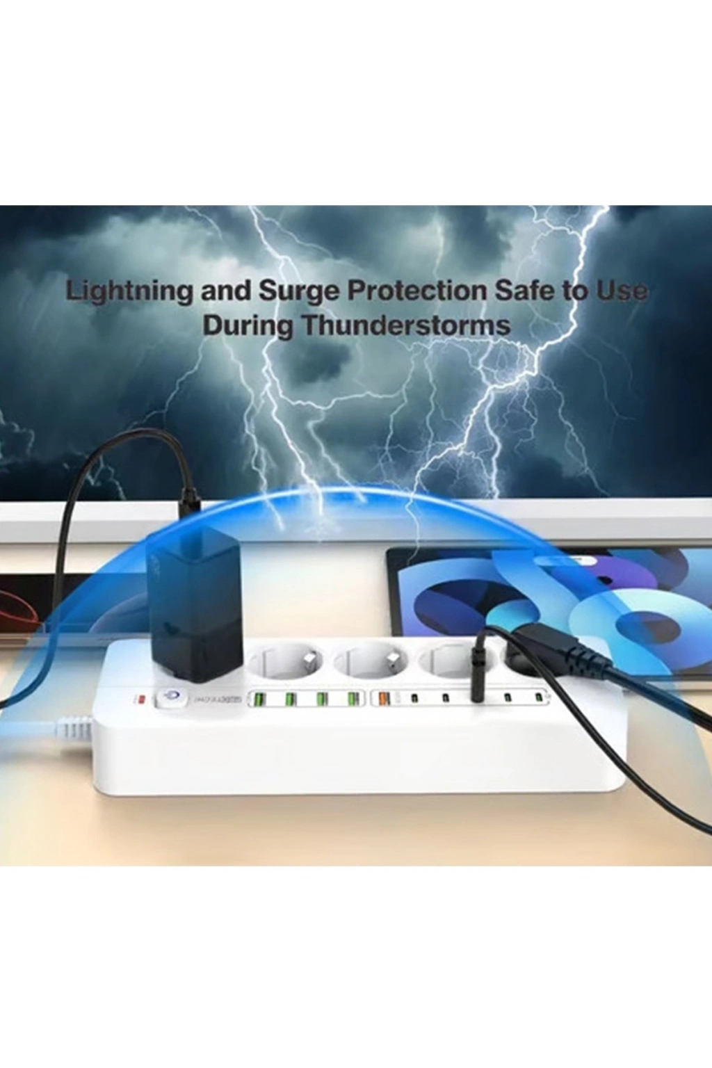 3500w Akım Korumalı 5’li Grup Priz: 5x Usb + 5x Type-c Çıkışlı (2 Metre)