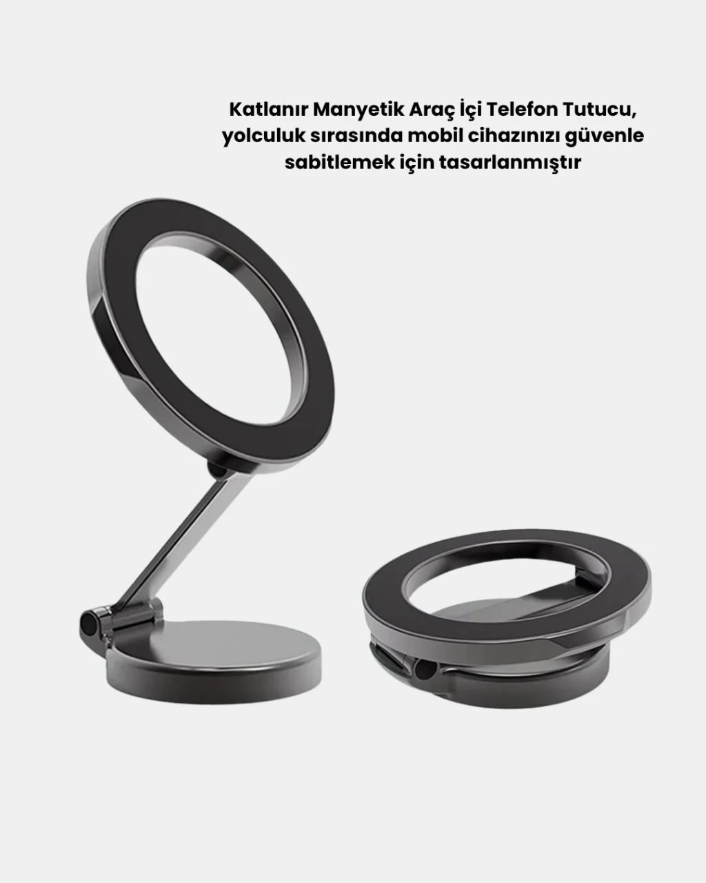 Sürüş esnasında telefonunuzu güvenle sabitlemenin en pratik yolu: Katlanır Manyetik Araç Telefon Tutucu. Güçlü manyetik çekim gücü sayesinde telefonunuzu sarsıntısız bir şekilde sabit tutar. MagSafe destekli cihazlar için özel olarak tasarlanmış manyetik yüzeyiyle maksimum uyum sağlar.360° dönebilir ve ayarlanabilir tasarımı, ekranı istediğiniz yöne çevirebilmenize olanak tanır. Dikey veya yatay kullanım seçenekleriyle navigasyon, müzik veya arama işlemlerinizi kolaylaştırır.Katlanabilir yapısı sayesinde kullanmadığınız zamanlarda tamamen kapanarak yer tasarrufu sağlar. Es ve minimalist tasarımı, araç iç mekânına modern bir dokunuş katar.Dayanıklı malzeme yapısı, uzun ömürlü kullanım sağlarken, güçlü yapışkan tabanı sayesinde pürüzsüz yüzeylere sıkıca tutunur. Ergonomik formu sayesinde görüş açınızı engellemeden konforlu bir sürüş sunar.Katlanır Manyetik Araç Telefon Tutucu, pratikliği, şıklığı ve güvenliği bir araya getirerek sürüş deneyiminizi ileri taşır. Her yolculukta telefonunuz sabit, sürüşünüz konforlu olsun!
