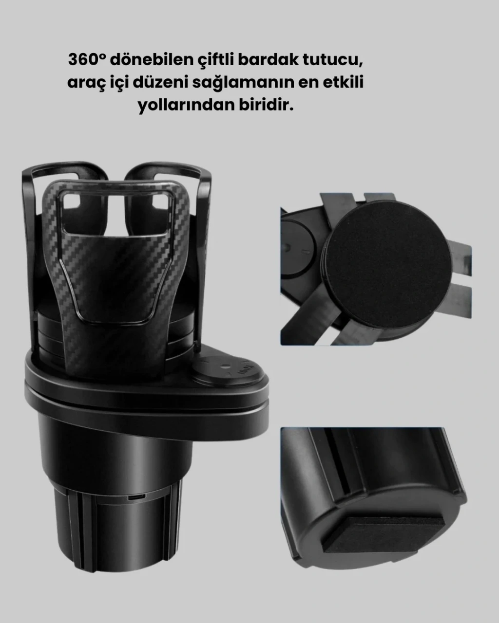 Bu 2’li araç seti, araç içinde hem düzen hem de es görünüm arayan kullanıcılar için ideal bir çözümdür. 360° dönebilen çiftli bardak tutucu, tek bardak yuvasını iki ayrı bölmeye ayırarak kullanım alanını genişletir. Ayarlanabilir açıklık yapısı sayesinde küçük bardaklardan büyük termoslara kadar birçok içecek rahatlıkla yerleştirilebilir. Kalınlaştırılmış plastik malzeme dayanıklılık sağlarken, su geçirmez yüzeyi kolay temizlenebilir yapı sunar. Karbon fiber desenli modern tasarımı araç içi dekorasyonla uyum sağlar.Setin ikinci ürünü olan kablosuz ambiyans LED ışık, manyetik montaj sistemi sayesinde kablo karmaşası olmadan pratik kullanım sunar. 200 mAh bataryası ile 2–3 saat kesintisiz aydınlatma sağlar ve USB ile hızlı şekilde şarj edilir. Araç içi konforu ve görsel şıklığı bir arada sunan fonksiyonel bir settir.