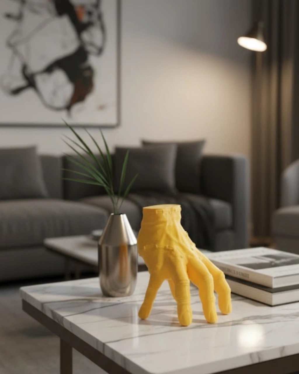3D Dekoratif Sarı El Obje 17x16 cm, dekorasyonda özgünlük arayanlar için tasarlanmış sanatsal bir tasarım ürünüdür. Heykelsi yapısı ve dikkat çekici rengi sayesinde bulunduğu ortamın atmosferini güçlendirir.Konsol üzerinde tek başına sergilenebilir ya da mum, çerçeve ve kitaplarla kombinlenerek es bir dekor kompozisyonu oluşturulabilir. Özellikle açık tonlu duvar önünde kullanıldığında güçlü bir kontrast sağlar.Sarı tonun canlılığı mekâna dinamizm ve sıcaklık katar. Ev hediyesi olarak da farklı ve unutulmaz bir alternatif sunar.