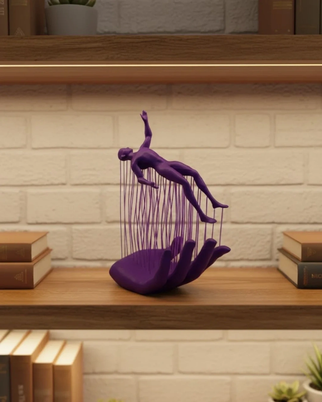 Özgün tasarımıyla fark yaratan 3D El Formlu İnsan Figürü Mor, dekorasyona sanatsal bir kimlik kazandırır. İnsan figürünün el formu üzerinde yükselir gibi durması, ürüne hareket ve soyut bir anlatım kazandırır.Dayanıklı malzemeden üretilmiş olup uzun süre formunu ve canlı rengini korur. Ev ve ofis dekorasyonunda es bir tamamlayıcı olarak kullanılabilir. Kendiniz için özel bir parça ya da özgün bir hediye alternatifi arıyorsanız, bu mor biblo güçlü ve şık bir tercihtir.
