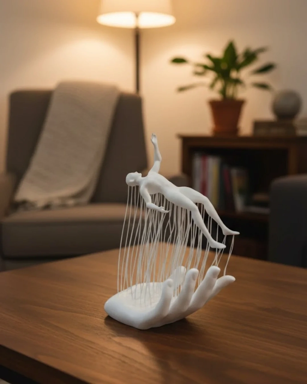 Modern dekorasyon anlayışını yansıtan 3D El İnsan Figürü Beyaz, soyut tasarımıyla mekanlara sanatsal bir dokunuş ekler. El formu ve insan figürünün birleşimi, es ve anlamı bir arada sunarak dekorasyonda fark yaratır.Beyaz renkli yüzeyi sayesinde sade, şık ve zamansız bir görünüm sağlar. Minimal, İskandinav, modern ve loft tarzı dekorasyonlarla uyumlu yapısı sayesinde farklı yaşam alanlarında rahatlıkla kullanılabilir. Tek başına sergilendiğinde bile dekorasyonu tamamlayan güçlü bir obje olarak öne çıkar.Kompakt ölçüleri sayesinde masa üstü, raf veya konsol üzerinde dengeli ve zarif bir görünüm sunar. Evinde sanatsal detaylara yer vermek isteyenler için ideal bir dekoratif üründür.