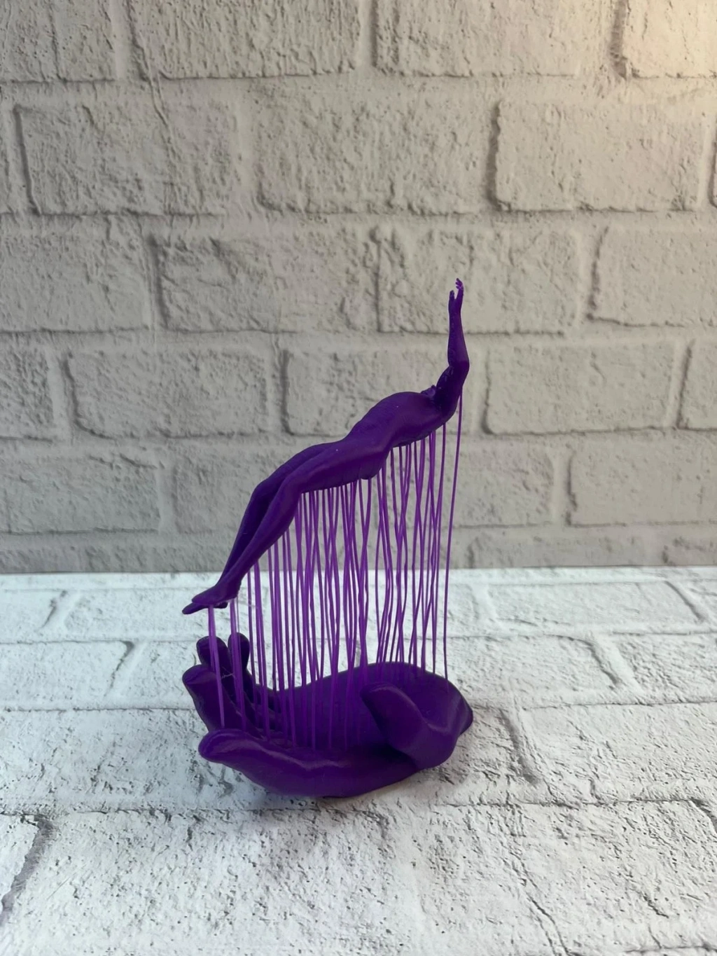 3D El İnsan Figürü Mor, modern sanat anlayışını dekorasyona taşıyan özgün ve dikkat çekici bir biblodur. İnsan figürünün ince ip detaylarıyla el formu üzerinde süzülür gibi konumlandırılması, ürüne hem sanatsal hem de soyut bir karakter kazandırır. Akışkan tasarımı sayesinde bulunduğu ortamda güçlü bir es etki oluşturur.Mor rengin sofistike ve etkileyici tonu, dekorasyonda odak noktası yaratır. Salon rafları, TV ünitesi, kitaplık, konsol veya masa üzerinde sergilendiğinde modern bir vurgu sağlar. Minimal ve modern dekorasyon stilleriyle kusursuz uyum sunar.