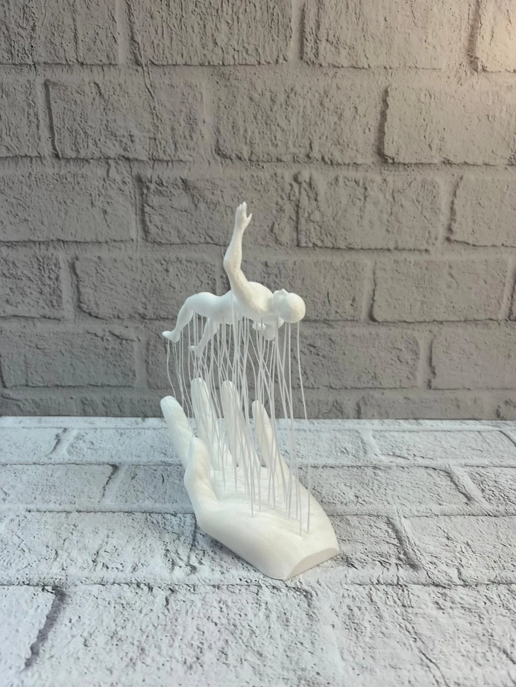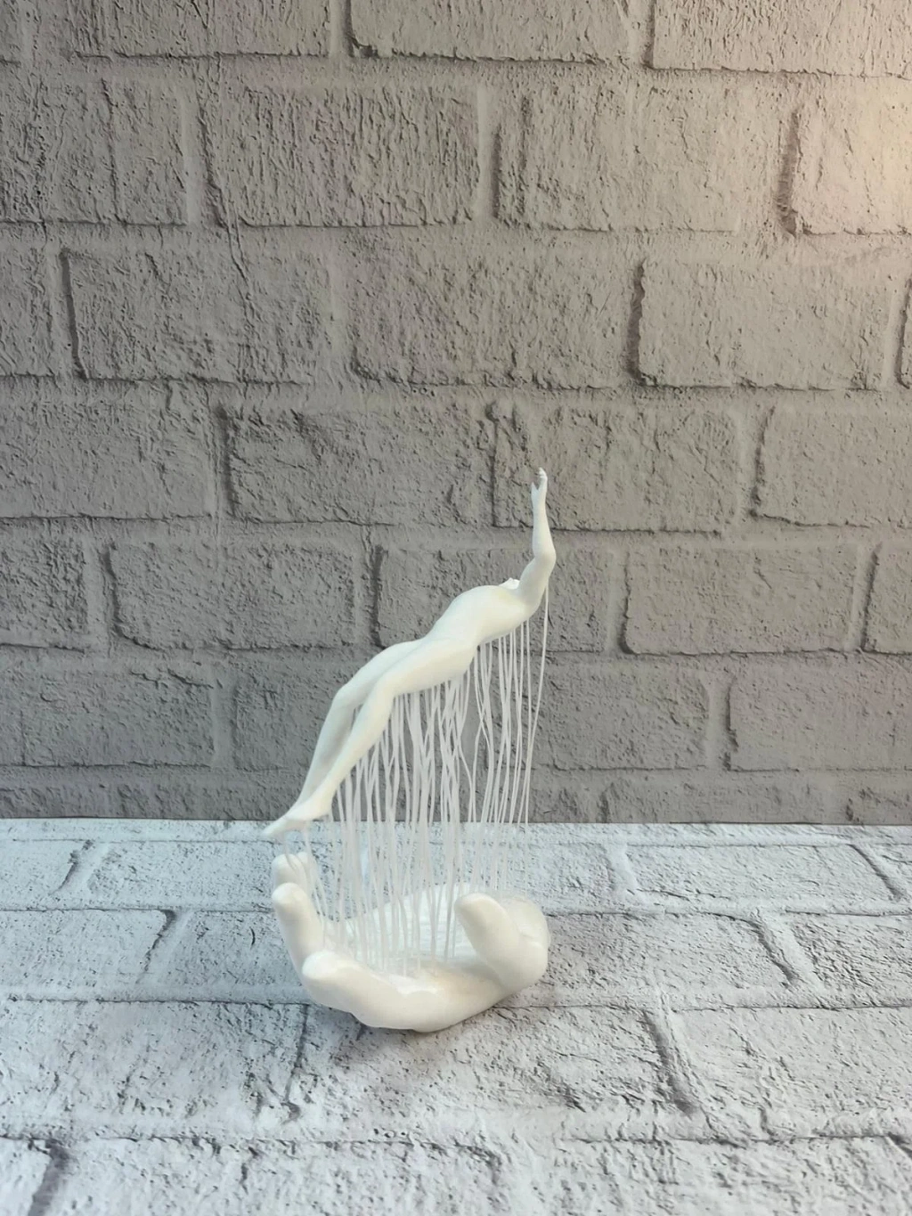 3D El Üzerinde İnsan Figürü Beyaz, modern sanat anlayışından ilham alan özgün tasarımıyla dekorasyona karakter kazandırır. İnsan figürünün el formu üzerinde konumlandırılması, es bir denge ve soyut bir anlatım sunar.Beyaz rengi sayesinde bulunduğu ortamda sade ama dikkat çekici bir etki yaratır. Salon, ofis ve çalışma alanlarında dekoratif bir odak noktası oluşturur. Minimal yapısı sayesinde kalabalık görüntü oluşturmaz, aksine ortamı dengeler.12×18 cm ölçüsü ile küçük alanlarda bile rahatlıkla kullanılabilir. Sanatsal objeleri sevenler ve modern dekorasyona önem verenler için şık bir tamamlayıcıdır.