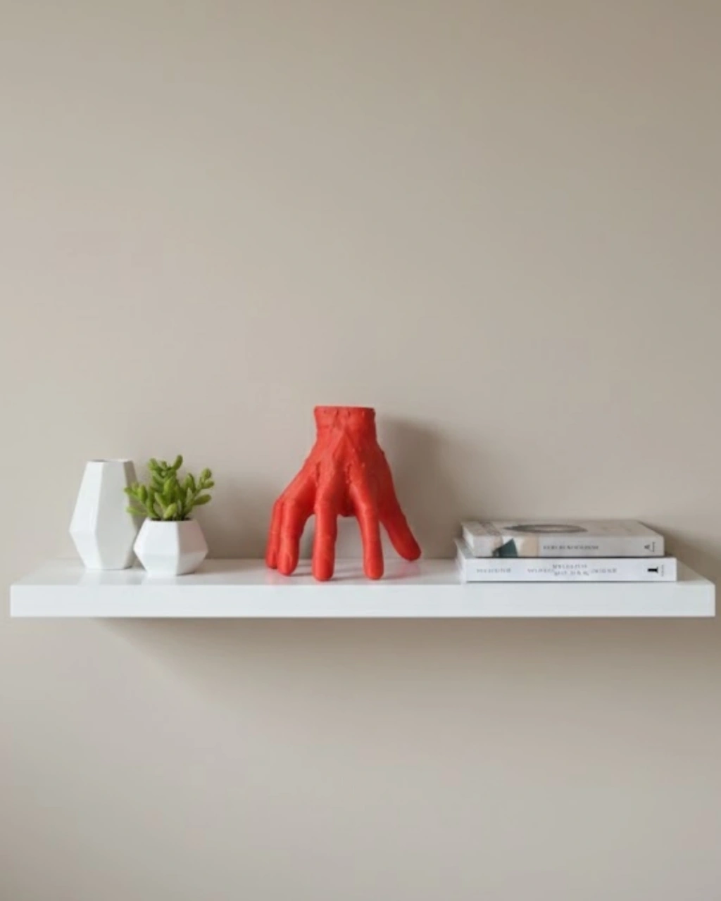 3D Kırmızı El Biblo 17x16 cm, ev ve ofis dekorasyonunda fark yaratmak isteyenler için tasarlanmış cesur bir objedir. Heykelsi formu sayesinde sıradan aksesuarların ötesine geçer.Raf sistemlerinde, TV ünitesi üzerinde, çalışma masasında veya komodin üstünde rahatlıkla kullanılabilir. Özellikle kitaplık dekorasyonunda kitap tutucu görünümüyle es bir etki yaratır.Canlı kırmızı renk, mekâna enerji ve dinamizm kazandırır. Endüstriyel, modern ve alternatif dekor stillerine uyum sağlar.