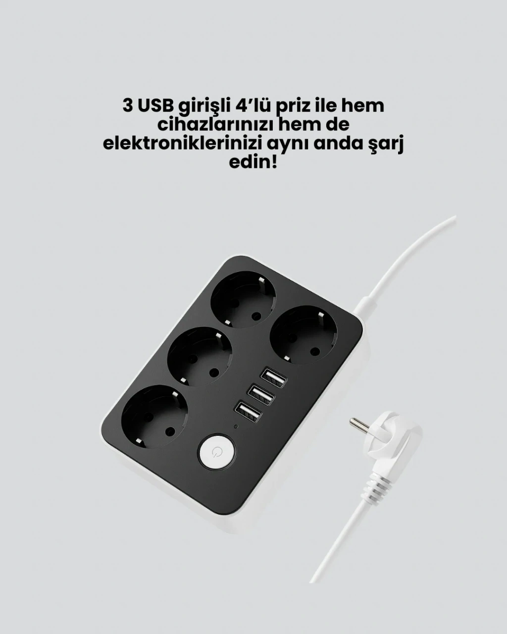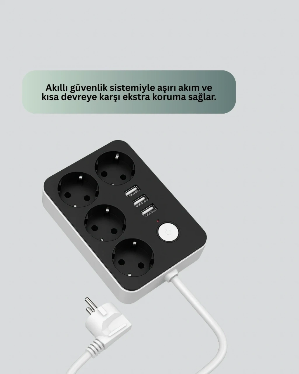Günlük yaşamda ihtiyaç duyulan tüm cihazları güvenle kullanabilmeniz için geliştirilmiş bu priz, akım koruma teknolojisi ile yüksek voltaj ve elektrik dalgalanmalarına karşı koruma sağlar. 4 adet priz çıkışı sayesinde ev aletlerinizi, bilgisayarınızı veya ofis ekipmanlarınızı güvenle bağlayabilirsiniz. 3 adet USB portu 4.1A hızlı şarj özelliğine sahiptir ve telefon, tablet, kulaklık gibi mobil cihazlarınızı adaptörsüz şarj etmenizi sağlar. Toplamda 7 cihazı aynı anda kullanabilme imkânı sunar. 2 metre kablo uzunluğu sayesinde prizi dilediğiniz noktada rahatlıkla kullanabilirsiniz. 2500W güce kadar destek veren bu priz, güçlü ve güvenilir bir elektrik çözümüdür. Açma-kapama anahtarı ile enerji tüketimini kontrol altında tutabilir, güvenliği artırabilirsiniz. Kompakt ve taşınabilir yapısı ile hem evinizde hem de iş yerinizde kolayca kullanılabilir. Şık tasarımı, dayanıklı yapısı ve hızlı şarj desteği ile hayatınızı kolaylaştırır.