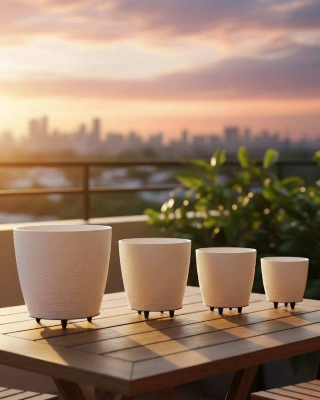 • 4’lü 3d Modern Beyaz Vazo Takımı Ayaklı Dekoratif Saksı Seti