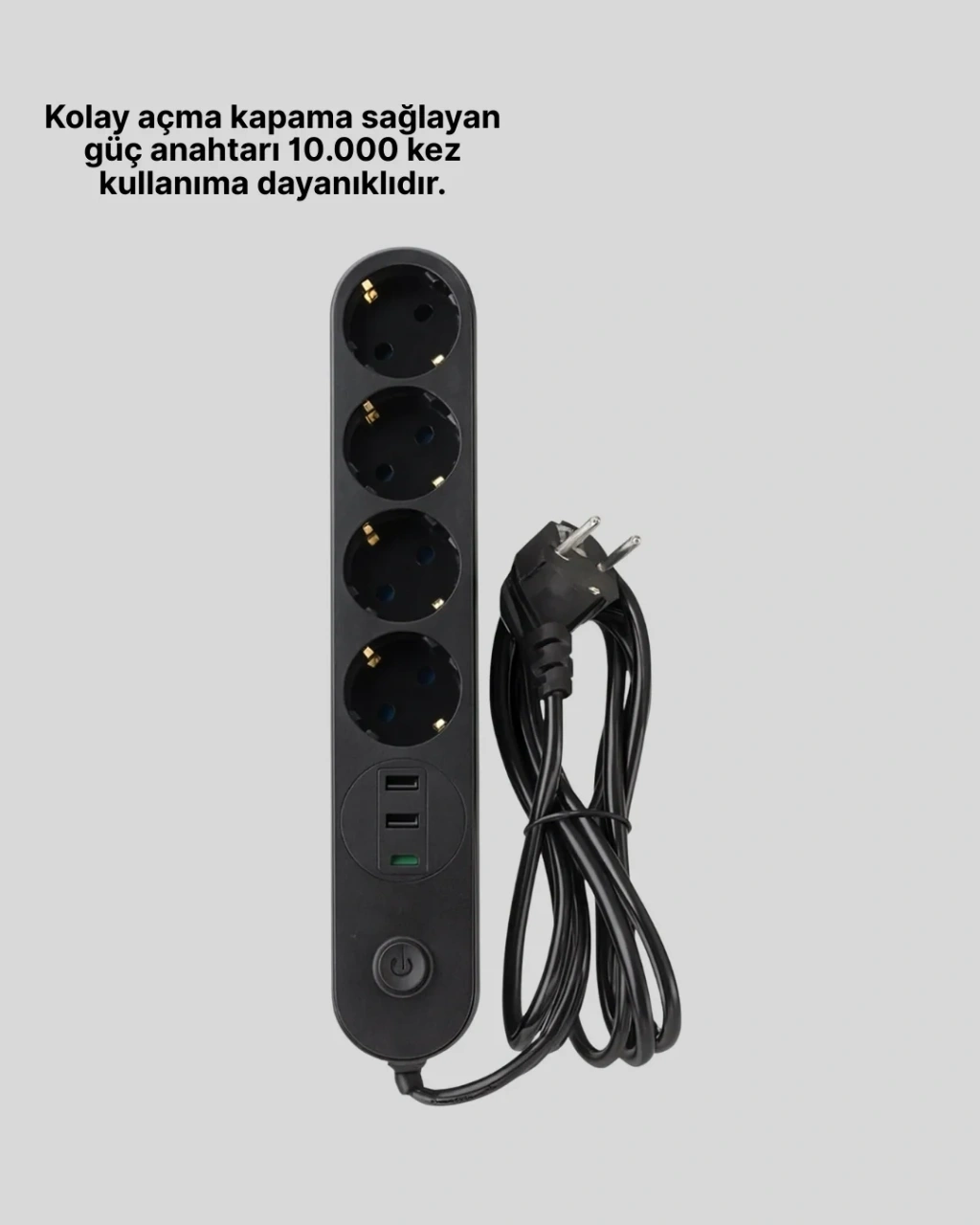 Akım korumalı 4’lü çoklu priz, aynı anda birden fazla cihazı güvenle kullanmak isteyenler için geliştirilmiştir. 2 USB ve 1 Type-C bağlantı noktası, özellikle mobil cihaz kullanıcıları için büyük kolaylık sağlar. Tek bir priz üzerinden hem klasik fişli cihazlar hem de USB destekli ürünler rahatlıkla kullanılabilir.250V giriş voltajı ve 10A çalışma değeri ile güçlü bir performans sunan ürün, maksimum 2500W güç kapasitesine sahiptir. Smart akım dengeleme özelliği, her cihaza ihtiyacı kadar enerji aktararak aşırı yüklenmenin önüne geçer. Bu sayede cihazlarınız daha stabil ve güvenli çalışır.Termal ve kısa devre koruma sistemi, ani akım değişimlerinde prizleri devre dışı bırakarak elektronik eşyalarınızı korur. Yüksek ısıya dayanıklı PC-ABC kasa, güvenli ve uzun ömürlü kullanım sağlar. Priz yuvaları 20.000 kez tak-çıkar testinden geçmiş olup, güç anahtarı 10.000 aç-kapa ömrüne sahiptir.2 metre uzunluğundaki kablosu, farklı kullanım alanlarında esneklik sağlar. Led indikatörlü anahtar, prizlerin aktif durumunu kolayca görmenizi sağlar. Siyah renkli modern tasarımı, her ortama uyum sağlar.Ev, ofis ve çalışma alanlarında televizyon, bilgisayar, modem, yazıcı ve benzeri tüm elektronik cihazlar için güvenilir bir enerji çözümüdür.