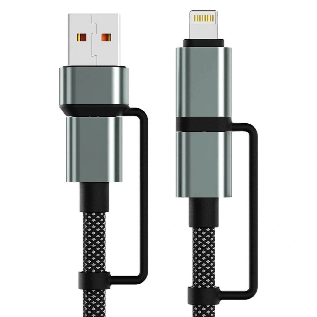 4'ü 1 Arada Akıllı Tasarım: Tek bir kablo üzerinde bulunan USB-A, USB-C ve Lightning () dönüştürücü başlıklar sayesinde cihaz seçmez. Evde, ofiste veya araçta kablo kalabalığına son verir.