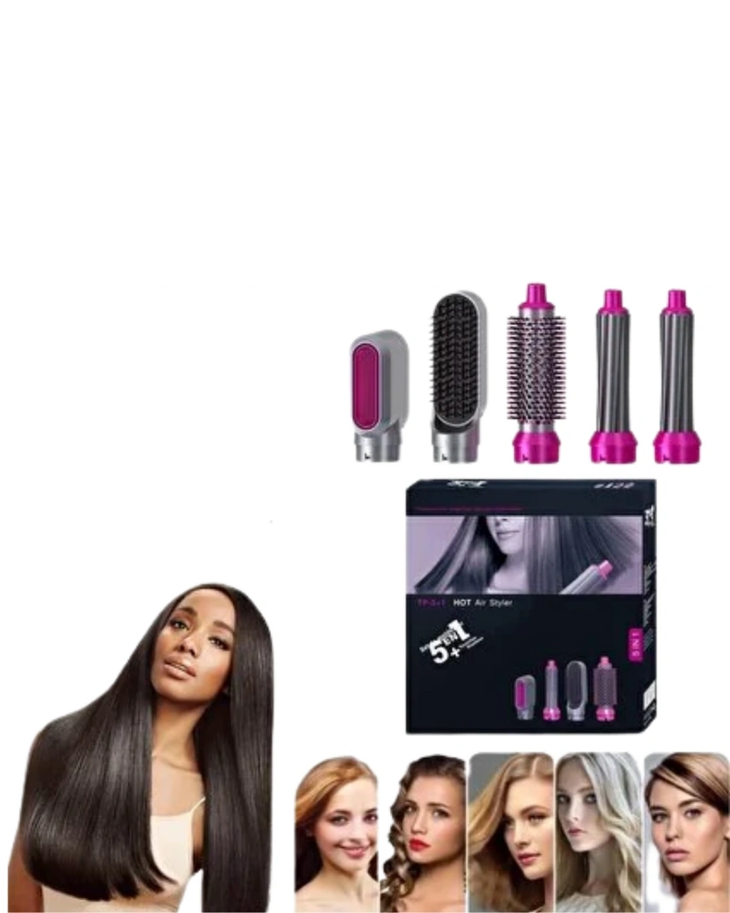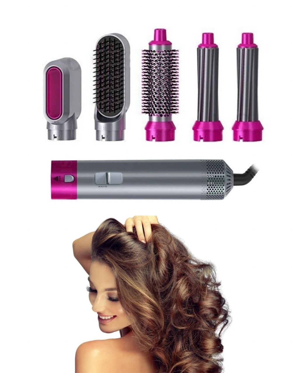 Saç şekillendirme deneyimini pratik ve profesyonel hale getiren 5 in 1 saç şekillendirici set, çok yönlü kullanımı ile günlük hayatın vazgeçilmez yardımcılarından biri haline gelir. Tek cihaz ile birden fazla işlem yapabilme özelliği sayesinde kullanıcıya büyük kolaylık sağlar.Güçlü 1000W motoru sayesinde hızlı ısınma özelliğine sahip olan cihaz, kısa sürede kullanıma hazır hale gelir. 4 farklı ısı ayarı ile saç tipine uygun sıcaklık seçimi yapılabilir ve saç sağlığı korunarak şekillendirme işlemi gerçekleştirilebilir.Döner kablo yapısı kullanım sırasında rahatlık sağlar ve kablonun dolaşmasını önler. Ergonomik tasarımı sayesinde elde rahat tutulur ve uzun süreli kullanımlarda konfor sunar.Aşırı ısınma koruma sistemi sayesinde güvenli kullanım sağlayan ürün, dayanıklı yapısı ile uzun ömürlüdür. Ayrıca cihaz üzerinde bulunan güç göstergesi kullanım kolaylığı sağlar.Set içerisinde yer alan başlıklar sayesinde saçınıza farklı stiller kazandırabilirsiniz. Günlük doğal dalgalar, hacimli fönler veya düz saç modelleri için idealdir.Hem ev kullanıcıları hem de profesyonel kullanım için uygun olan bu ürün, saç bakımını kolaylaştıran etkili bir çözümdür.