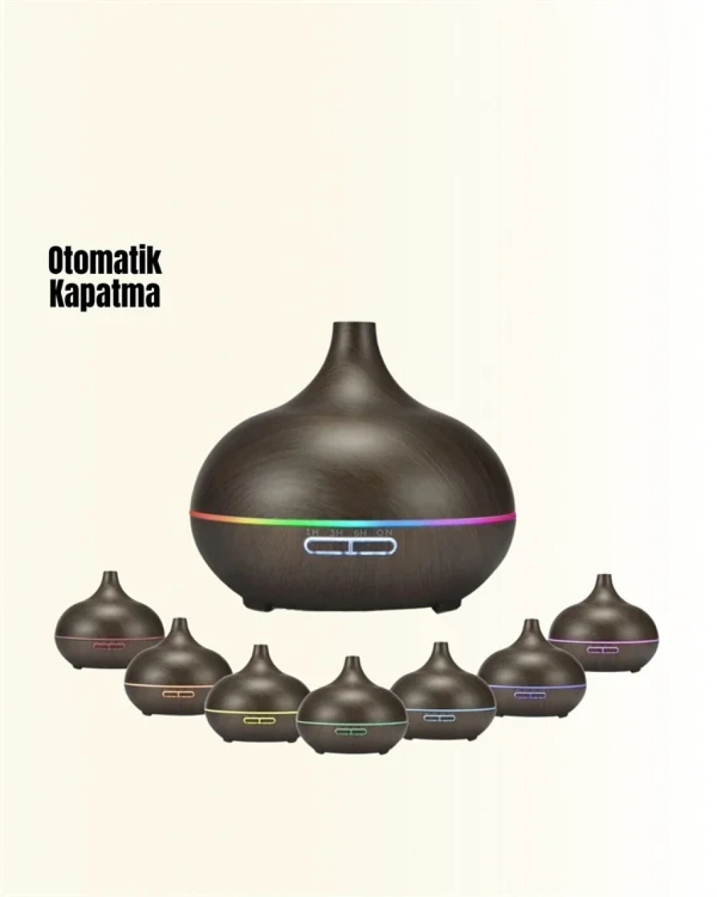 550 ml geniş su haznesine sahip bu cihaz, hem uçucu yağ difüzörü hem de nemlendirici olarak kullanılabilir. Güçlü buhar modunda 8-10 saat, zayıf buhar modunda 12-16 saat kesintisiz çalışabilir. Suya birkaç damla uçucu yağ eklenerek ortama hoş bir koku yayılabilir. Ayrıca sadece nemlendirici olarak da işlev görür. Su bittiğinde ya da ayarlanan süre dolduğunda otomatik olarak kapanarak güvenli kullanım sağlar. Ultrasonik teknolojisi sayesinde 21 dB'nin altında sessiz çalışır. 1, 3, 6 saatlik zamanlayıcı seçenekleri ile birlikte sürekli açık mod da bulunur. 7 farklı LED ışık seçeneği (parlak ve loş modlu) ile rahatlatıcı bir atmosfer oluşturur.