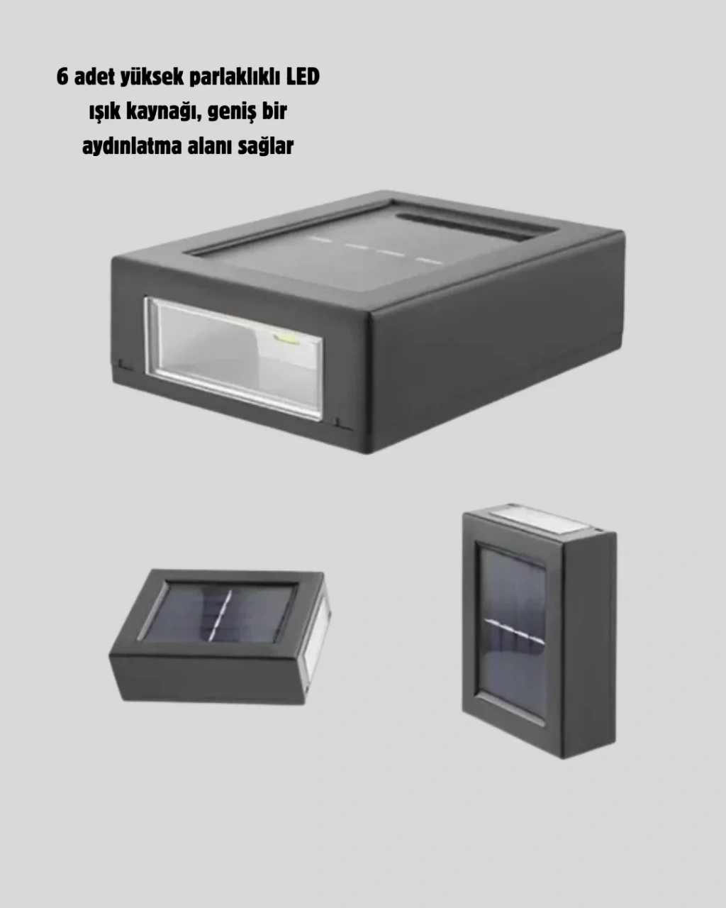 Bu güneş enerjili aydınlatma sistemi, modern teknolojiyi doğayla buluşturur. Dahili ışık sensörü sayesinde tamamen otomatik çalışır: Gün boyunca güneş enerjisini emerek bataryasında depolar, hava karardığında ise kendiliğinden devreye girerek bulunduğu alanı aydınlatır. Gün doğduğunda tekrar kapanır ve şarj döngüsüne devam eder. Bu sistem, enerji tasarrufunu en üst seviyeye çıkarırken, manuel müdahale ihtiyacını ortadan kaldırır. 6 adet yüksek parlaklıklı LED, geniş bir aydınlatma alanı sağlar. Bahçe yolları, teraslar, balkonlar, garaj girişleri veya verandalar için mükemmel bir çözümdür. IP65 su geçirmez gövdesi, yağmur ve dış etkenlere karşı tam koruma sağlar. ABS malzemeden üretilmiş dayanıklı yapısı uzun ömürlü kullanım sunar. Montajı kablosuzdur ve duvara kolayca sabitlenebilir. Bu çevre dostu solar lamba, düşük enerji tüketimiyle hem gezegenimizi hem cebinizi korur.