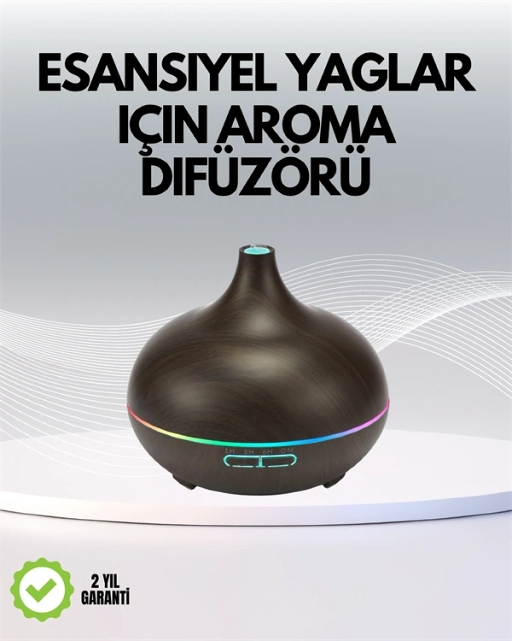 Bu cihaz, aromaterapi ve nemlendirme fonksiyonlarını bir arada sunar. 550 ml'lik geniş su tankı, ortamın uzun süre nemli kalmasını sağlar. Uçucu yağlarla kullanıldığında ferahlatıcı koku yayılımı elde edilir. 1, 3, 6 saatlik zaman ayarı ve sürekli çalışma modu ile farklı kullanım senaryolarına uygundur. Su seviyesi azaldığında otomatik olarak kapanarak güvenli kullanım sunar. Ultrasonik çalışma sistemi sayesinde oldukça sessizdir. Ortam ışığını destekleyen 7 renkli LED aydınlatma, uyku anlarında ortam atmosferini olumlu yönde etkiler.
