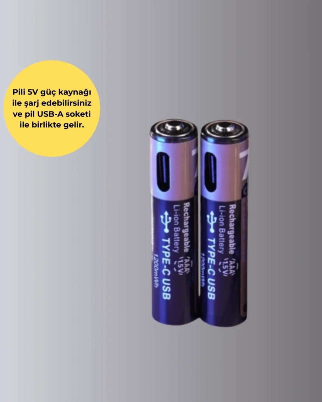 Modern yaşamın vazgeçilmezi olan elektronik cihazlar için enerji kaynağının taşınabilir, güvenli ve hızlı şarj edilebilir olması gerekir. USB Type-C girişine sahip bu AAA lityum pil, bu ihtiyacı eksiksiz karşılıyor. Kompakt boyutu sayesinde taşınabilirliği kolay, kullanımı ise son derece pratiktir.Kullanım alanı oldukça geniştir. Oyuncaklar, uzaktan kumandalar, dijital tansiyon aletleri, mikrofonlar, el fenerleri, tıraş makineleri ve güzellik cihazları gibi çok sayıda ev ürününde güvenle kullanılabilir. Sabit 1.5V çıkışı sayesinde bu cihazlarda voltaj düşüklüğü kaynaklı performans kaybı yaşanmaz.Type-C şarj girişi, cihazı her ortamda şarj edilebilir hale getirir. Evde, ofiste ya da seyahatte powerbank veya bilgisayar yardımıyla kolayca şarj edebilirsiniz. Ürünün birlikte gelen USB-A adaptörü sayesinde esnek şarj imkanı da mevcuttur. LED göstergeli şarj sistemi sayesinde pilin durumu kolayca takip edilebilir.Gelişmiş güvenlik özellikleriyle de öne çıkan bu AAA pil; aşırı ısınma, kısa devre, ters kutupluluk ve aşırı şarj gibi olasılıklara karşı korumalıdır. Bu yönüyle yalnızca güçlü değil, aynı zamanda güvenli bir enerji çözümüdür.Enerji verimliliği ve çevreye duyarlılık açısından da tercih edilen bu ürün, tekrar tekrar kullanılabilir olması sayesinde tek kullanımlık pillerin doğaya olan zararını ortadan kaldırır. Kompakt ve işlevsel bu pil, günlük hayatın enerji ihtiyacını karşılamak için ideal bir tercihtir.