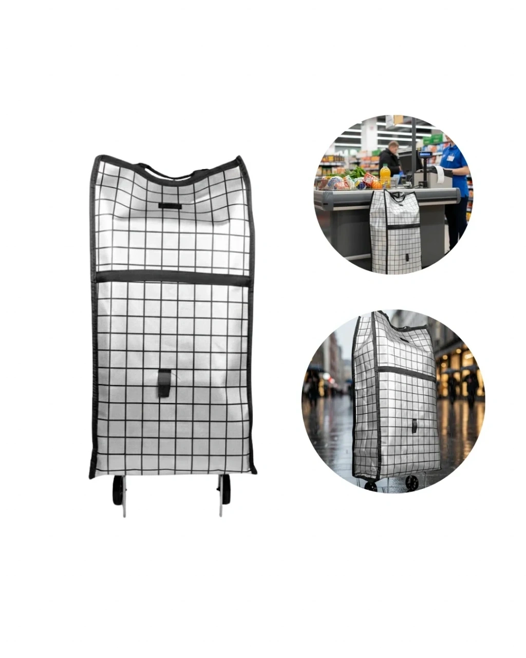 Bu tekerlekli pazar çantası, özellikle sık alışveriş yapan kullanıcılar için tasarlanmış pratik ve dayanıklı bir üründür. Büyük hacmi sayesinde haftalık pazar alışverişlerini tek seferde taşıyabilirsiniz. Sağlam kumaş dokusu, ürünlerin ağırlığı arttığında bile yıpranmaya karşı direnç gösterir. Uzun süreli kullanımlarda bile formunu koruyarak güven verir.Tekerlekli yapısı, çantayı taşımayı son derece kolaylaştırır. Merdiven çıkarken, kaldırım geçişlerinde veya market girişlerinde dengeyi koruyan tasarımı sayesinde rahat bir kullanım sağlar. Sap kısmı elde kayma yapmadan kavranır ve sürüş esnasında kontrolü kolaylaştırır. Özellikle ağır alışverişlerde kullanıcıya büyük konfor sağlar.Ev hanımları, yaş almış kullanıcılar veya günlük alışverişini konforlu yapmak isteyen herkes için ideal bir tercihtir. Katlanabilir özelliği sayesinde kullanılmadığında az yer kaplar ve ev içinde kolayca saklanabilir. Günlük yaşamda alışverişi daha düzenli, pratik ve konforlu hale getiren fonksiyonel bir çözümdür.