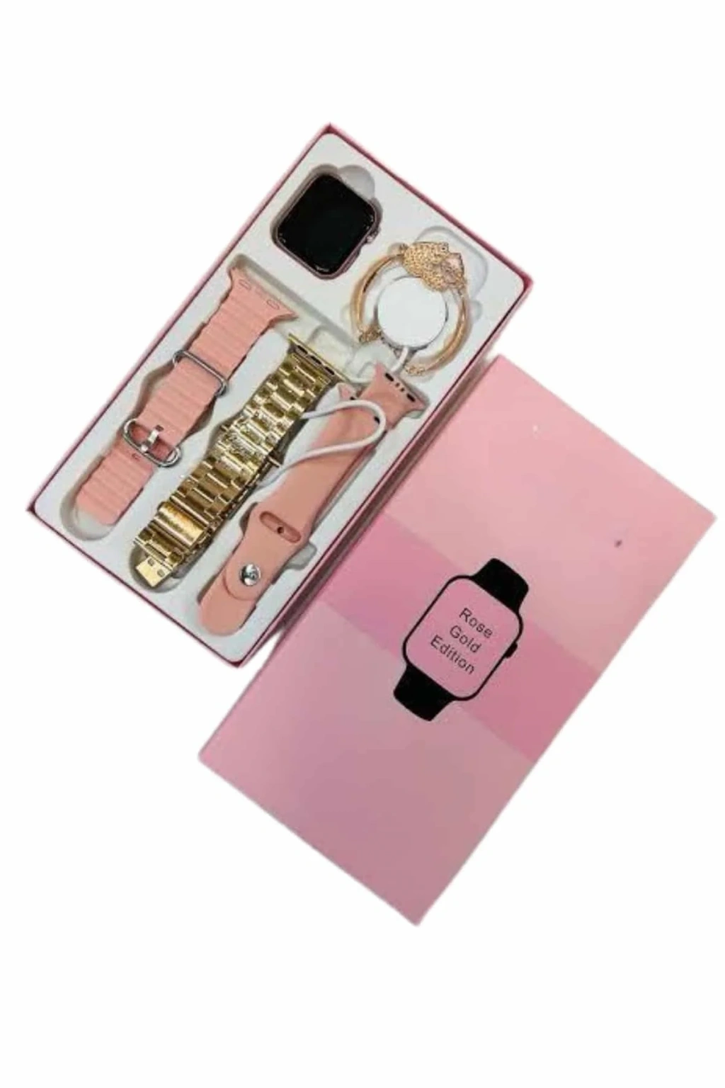 • Akıllı Saat 3 Kordonlu Ve Aksesuarlı Bayanlar Için Şık Rose Renk