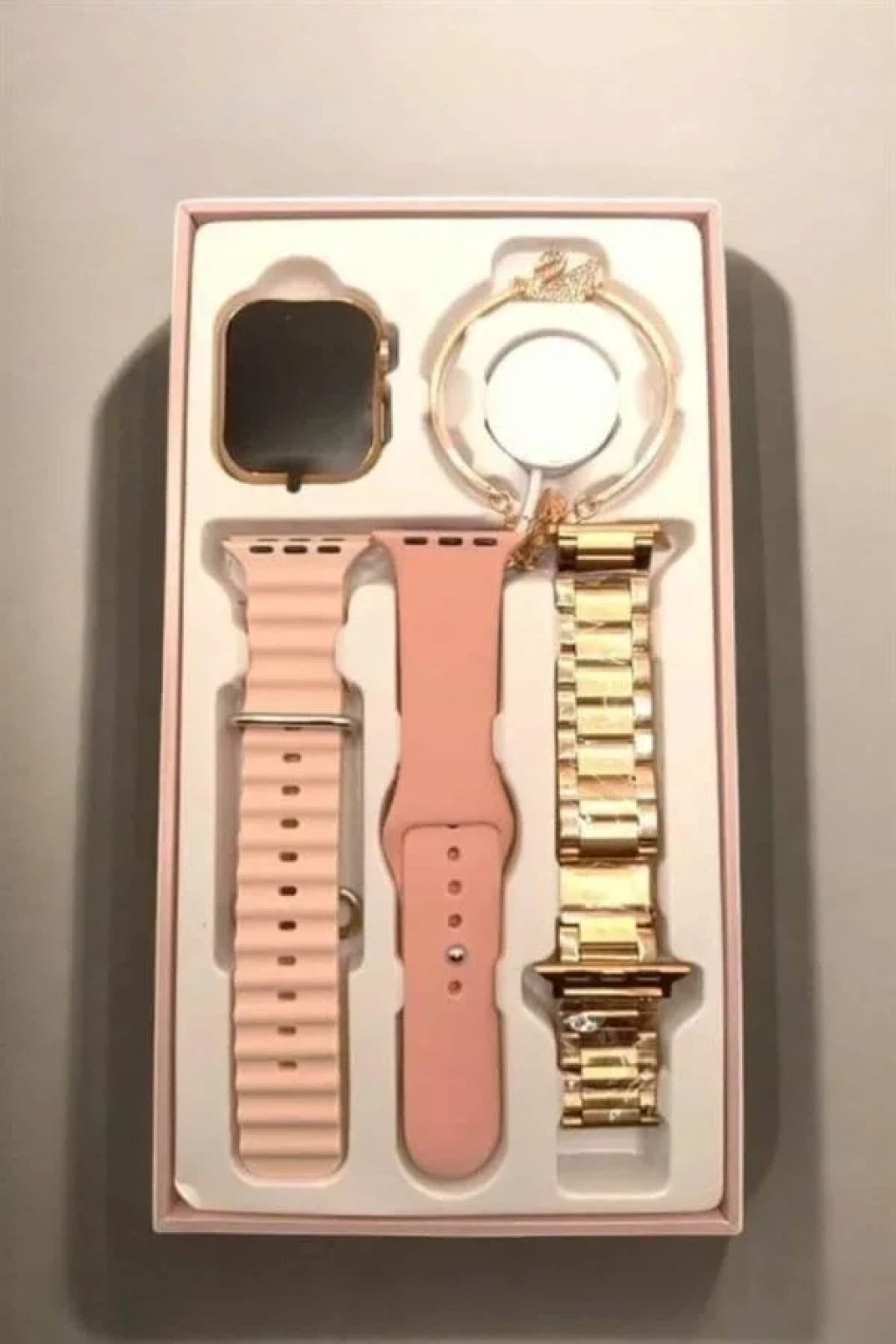 Şıklığı ve işlevselliği bir araya getiren bu akıllı saat, aksesuar severler için üç farklı kordon seçeneği ve zarif bir flamingo Bileklik ve yüzük  hediyesiyle birlikte gelir. Kordon seçenekleri arasında çelik metal, ocean tasarım ve silikon malzeme yer alır; böylece saatinizi günlük tarzınıza veya etkinliğinize göre uyarlayabilirsiniz. Hediye kolye, şık bir dokunuş ekler ve bu ürünü sadece teknolojik bir cihaz değil, aynı zamanda zarif bir aksesuar haline getirir. Saatin kapsamlı özellikleri ve kullanıcıya sunduğu hediyeler, hem fonksiyonel hem de es bir deneyim sunar.