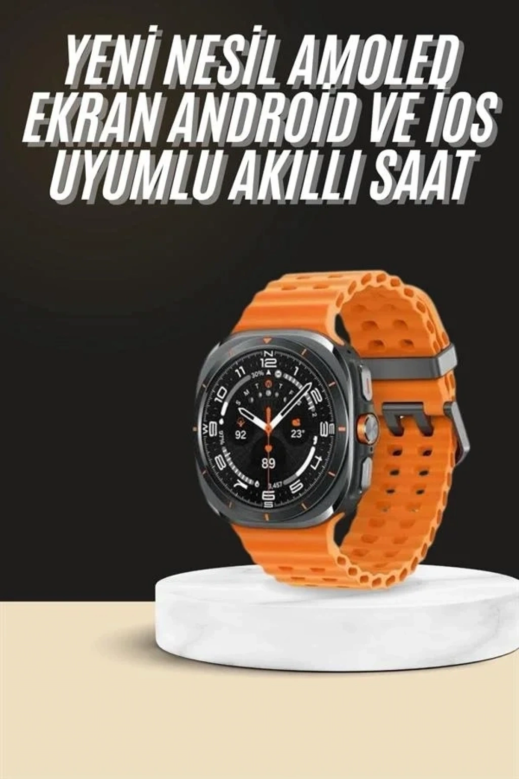 Sağlıklı yaşam hedeflerine ulaşmak isteyenler için özel olarak tasarlanan bu akıllı saat, günlük aktivitelerinizi kolayca takip etmenize olanak tanıyan adım sayar özelliğiyle ön plana çıkar. Uyku takibi fonksiyonu, gece boyunca uyku düzeninizi analiz ederek daha dinç ve verimli bir gün geçirmeniz için size yol gösterir. 500-600 mAh aralığındaki güçlü batarya kapasitesi, uzun süreli kullanım imkanı sunarak şarj konusunda endişe duymadan günlerinizi geçirmenizi sağlar.Hem erkek hem kadın yetişkin kullanıcılar için uygun olan bu saat, geniş bir kullanıcı kitlesine hitap eder ve herkes tarafından rahatlıkla kullanılabilir. Titreşimli bildirim özelliği, mesajları ve çağrıları sessizce haber vererek hiçbir bildirimi kaçırmamanıza yardımcı olur. Nabız sensörü, kalp atış hızınızı sürekli izleyerek sağlık durumunuzu anlık olarak kontrol etmenizi sağlar.IP sertifikalı suya ve toza karşı dayanıklı yapısı sayesinde zorlu hava koşullarında bile güvenle kullanılabilir; yağmurda, sporda ya da yoğun tempolu bir günde sizi yarı yolda bırakmaz. Entegre GPS sistemi ile konum takibi yapabilir, yolculuklarınızda kolay yön bulma özelliğinden faydalanabilirsiniz.Gümüş kasa rengi, zamansız bir zarafet sunarken turuncu kordonu ise dinamik ve enerjik bir tarz yaratır. 47 mm’lik ideal kasa çapı, bileğinizde es bir duruş sergilerken aynı zamanda konforlu bir kullanım sağlar. Eller serbest sesli görüşme özelliği ile iletişim kurmak artık daha pratik; çağrılarınızı doğrudan saatinizden yönetebilirsiniz. 2 yıl ithalatçı garantisiyle desteklenen bu saat, hem teknolojik hem de stil sahibi bir seçimdir.