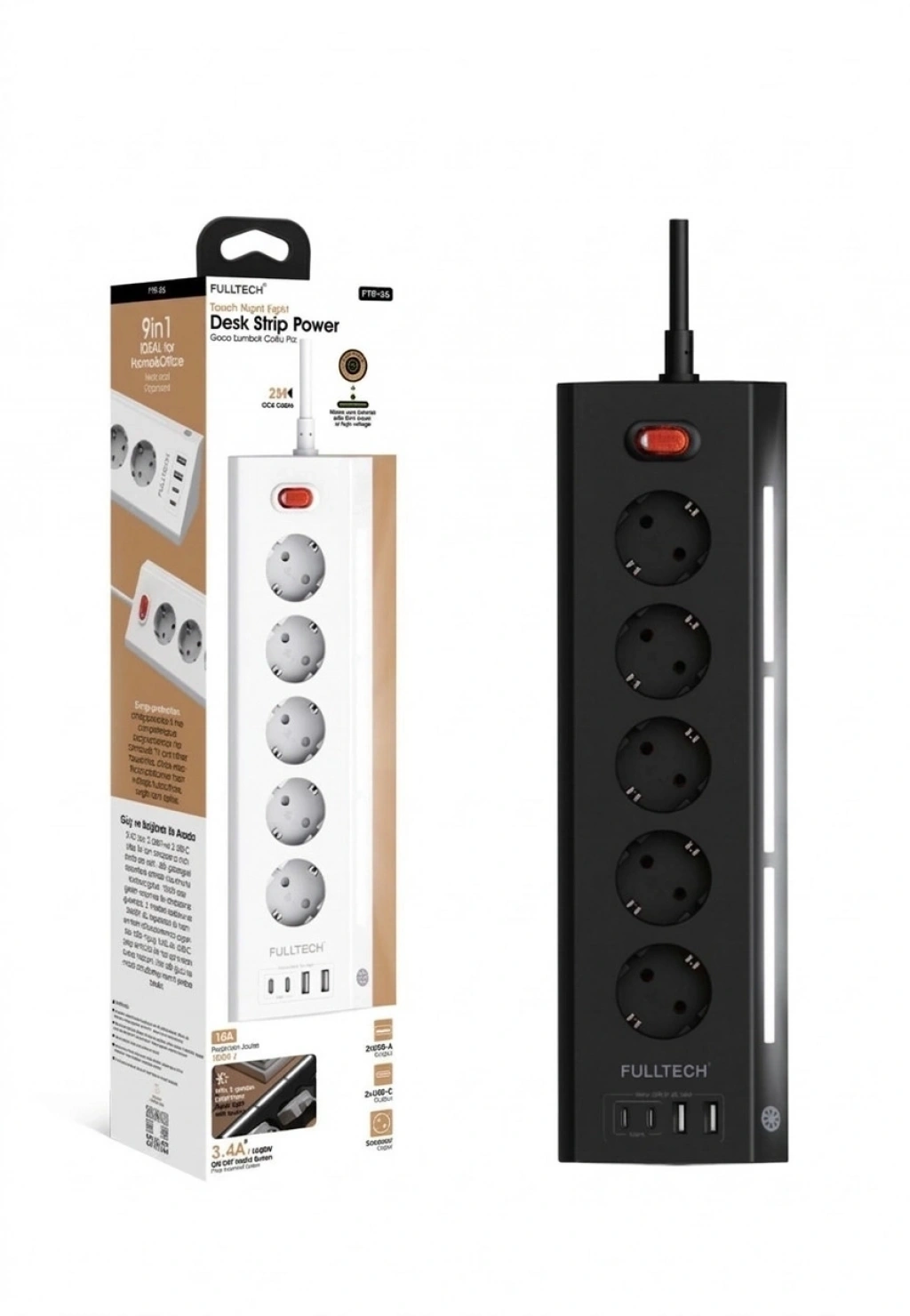 Çalışma masanızdaki kablo karmaşasına son verin ve değerli elektronik cihazlarınızı güvence altına alın! FTR-26, sadece bir priz çoğaltıcı değil; aynı zamanda yüksek hızlı bir şarj istasyonu ve zarif bir gece lambasıdır. 3680W yüksek güç kapasitesi ve 16A akım desteği ile ev ve ofis kullanımında maksimum performans sunar.