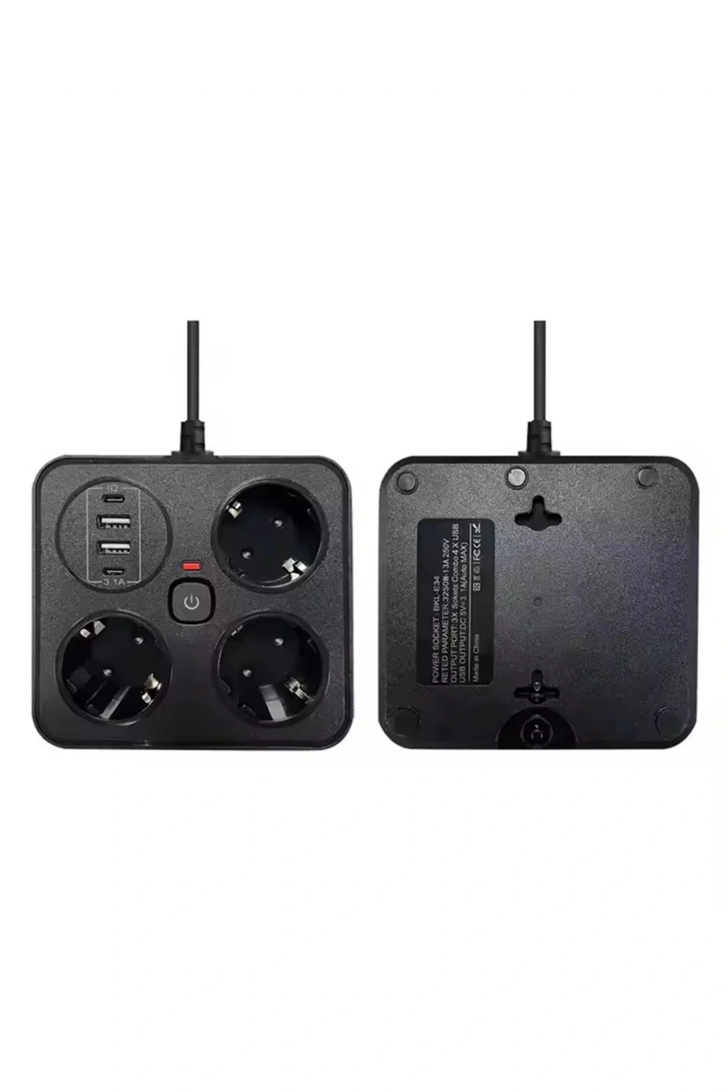 Akım Korumalı Anahtarlı Priz - 3X Priz - 2X Usb - 2X Type-C - 2 mt Kablo Hızlı Şarj Özellikli Siyah