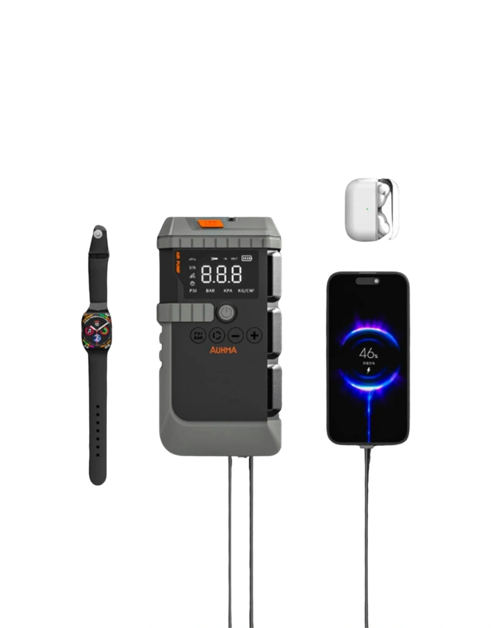 Araç sahipleri için tasarlanmış bu taşınabilir çok fonksiyonlu cihaz, hem güvenlik hem de pratik kullanım açısından büyük avantajlar sunar. Araç akü takviye özelliği, hava kompresörü, powerbank ve LED ışık gibi özellikleri sayesinde tek bir cihaz ile birçok farklı ihtiyacınızı karşılayabilirsiniz.Akü takviye fonksiyonu sayesinde aracınızın aküsü bittiğinde başka bir araçtan yardım almadan kendi aracınızı çalıştırabilirsiniz. Güçlü başlangıç akımı sayesinde araç motorunu hızlı şekilde çalıştırarak zaman kaybını önler. Akıllı koruma sistemi sayesinde cihaz güvenli bir kullanım sunar ve yanlış bağlantılara karşı koruma sağlar.Cihazın entegre hava kompresörü sayesinde araç lastiklerinin basıncını kolayca ayarlayabilirsiniz. Doğru lastik basıncı sürüş güvenliği açısından oldukça önemlidir. Dijital basınç göstergesi sayesinde lastik basıncını net şekilde görüntüleyebilir ve ideal seviyeye getirebilirsiniz.Farklı şişirme uçları sayesinde cihaz yalnızca araç lastikleri için değil, motosiklet lastikleri, bisiklet lastikleri, spor topları ve şişme ürünler için de kullanılabilir. Bu sayede evde, garajda veya seyahat sırasında çok amaçlı kullanım sunar.USB çıkış portları sayesinde telefon, tablet veya diğer elektronik cihazları şarj edebilirsiniz. Bu özellik cihazı aynı zamanda taşınabilir bir powerbank haline getirir. Özellikle kamp, seyahat ve uzun yolculuklarda oldukça kullanışlıdır.LED aydınlatma sistemi gece kullanımında büyük kolaylık sağlar. Araç tamiri, lastik kontrolü veya kamp aktiviteleri sırasında güçlü ışık sayesinde çevrenizi rahatlıkla aydınlatabilirsiniz. SOS modu ise acil durumlarda dikkat çekmek için kullanılabilir.Taşınabilir tasarımı sayesinde araç bagajında kolayca saklanabilir ve ihtiyaç duyduğunuz her an kullanıma hazır olur.