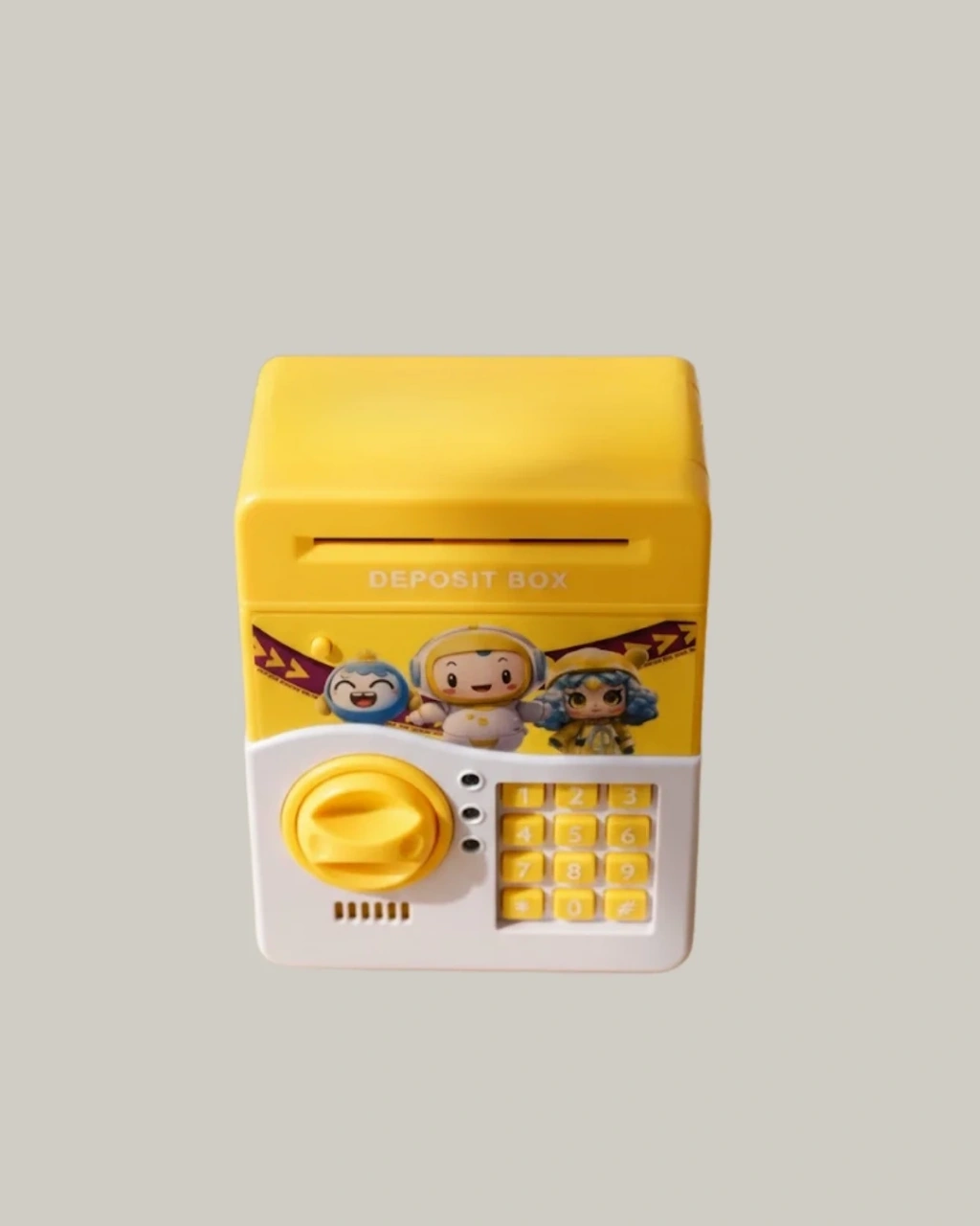 Bu sarı elektronik şifreli çocuk kumbarası, eğlence ile eğitimi bir araya getirerek biriktirmeyi keyifli bir alışkanlığa dönüştürür. Elektronik şifre sistemi, çocukların birikimlerini güvenle saklamasına olanak tanır. Kişisel şifre belirleme özelliği, çocuklara sorumluluk duygusu kazandırır.ATM tasarımı sayesinde gerçekçi bir kullanım sunar. Kâğıt lar otomatik olarak içeri çekilir, bozuk lar kolayca depolanır. Işıklı ve sesli geri bildirimler, çocukların ilgisini sürekli canlı tutar. Yüksek iç hacmi, bol miktarda saklama imkânı sunar.Sarı rengi ile çocuk odalarında dikkat çekici ve dekoratif bir görünüm sağlar. Dayanıklı ABS plastik malzeme, ürünü uzun süreli kullanım için uygun hale getirir. Eğitici, eğlenceli ve güvenli bir kumbaradır.