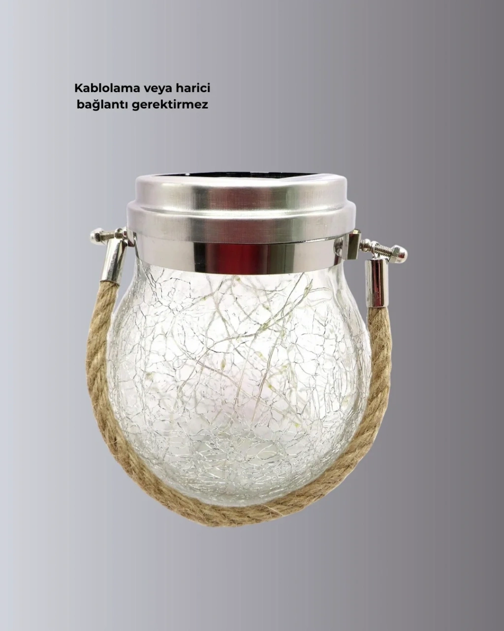Bahçe ve teras kullanımına uygun solar cam sarkıt LED aydınlatma, pratik kullanımıyla öne çıkar. Dahili solar pili sayesinde gündüz depoladığı enerjiyi gece ışığa dönüştürür. Harici güç kaynağına ihtiyaç duymaz, kablo karmaşası oluşturmaz. 30 LED ışık, cam şişe içerisinde eşit şekilde dağılır ve dekoratif bir görünüm sunar. Açık alan dekorasyonunu tamamlayan şık bir aydınlatma ürünüdür.