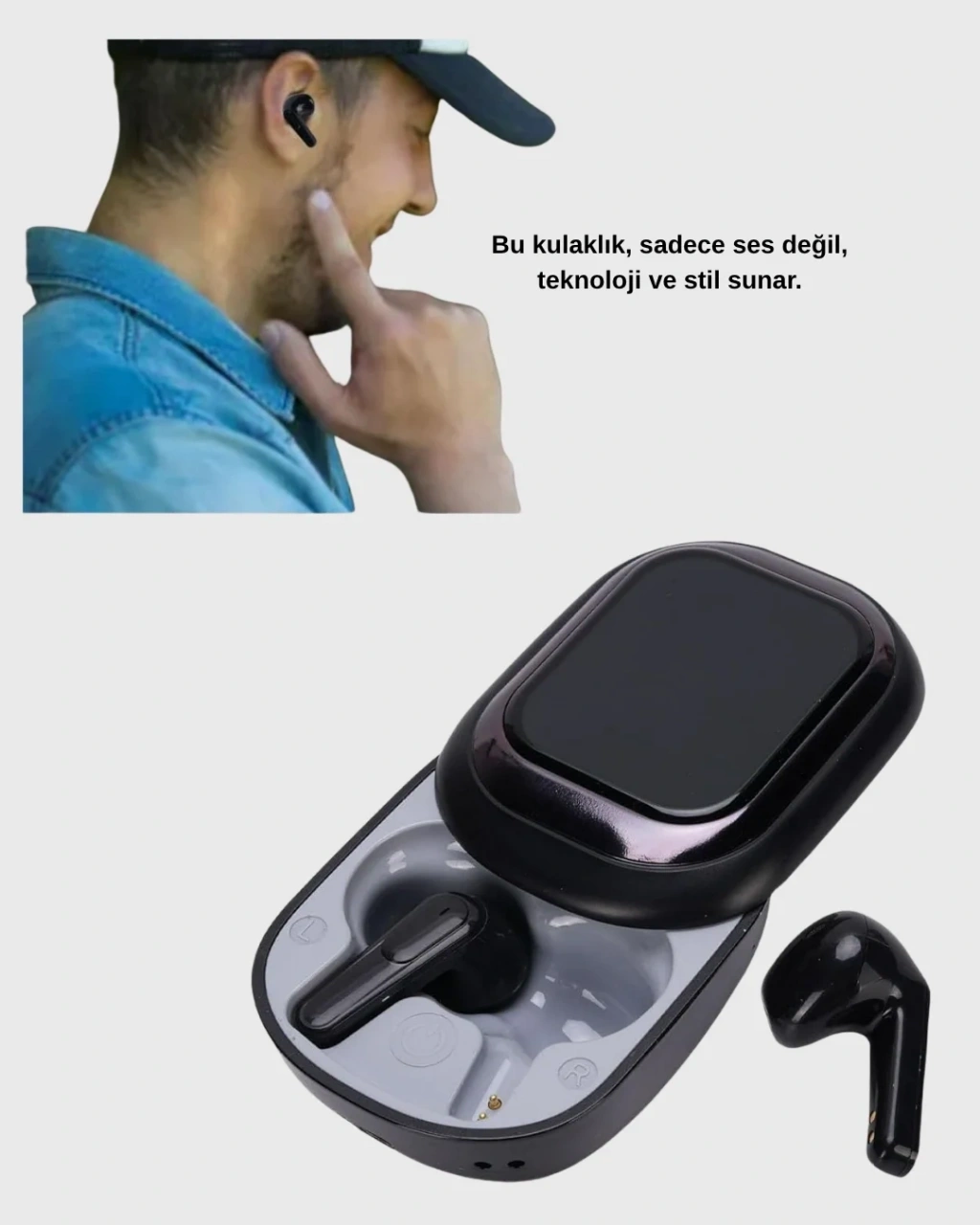 Yeni nesil Bluetooth 5.4 bağlantısı sayesinde ultra stabil bağlantı sunan bu kulaklık, kesintisiz bir ses deneyimi sağlar. Müzik dinlerken, oyun oynarken veya telefon görüşmesi yaparken gecikme olmadan kusursuz performans alırsınız.Aktif gürültü engelleme özelliği, dış sesleri filtreleyerek sizi tamamen müziğe veya görüşmeye odaklar.Akıllı ekranlı şarj kutusu sayesinde kulaklığın pil durumunu, şarj seviyesini ve bağlantı durumunu anlık olarak görebilirsiniz.Ergonomik tasarımı, kulağa tam oturan yapısı sayesinde uzun süre kullanımda bile rahatsızlık vermez. Hafifliğiyle günlük yaşamın her alanında yanınızda taşınabilir.Ayrıca, sosyal medya uygulamalarıyla senkronize çalışarak gelen bildirimleri gerçek zamanlı olarak gösterir; böylece önemli mesajları asla kaçırmazsınız.Gelişmiş mikrofon sistemi, telefon görüşmelerinde yüksek netlik sunar. Modern tasarımıyla hem tarzınıza hem konforunuza hitap eden bu kulaklık, mükemmel ses performansını şık bir görünümle birleştirir.