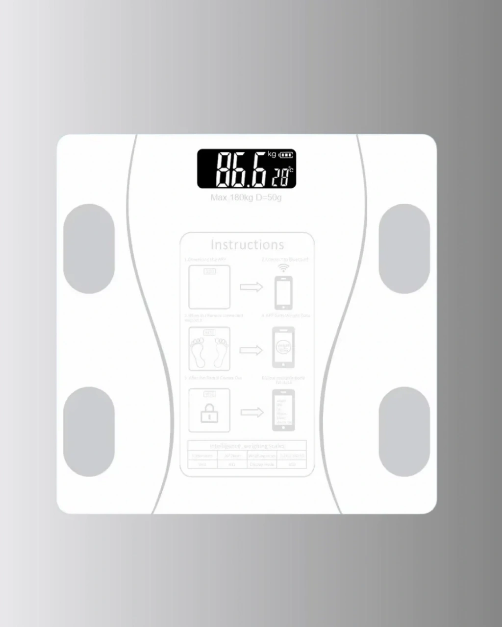 Bluetooth Akıllı Tartı – 8 Fonksiyonlu Dijital Baskül, 180 Kg Kapasiteli