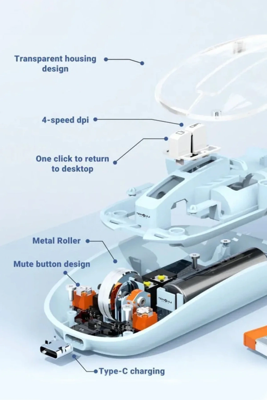 Yeni nesil Bluetooth + USB çift modlu kablosuz mouse, teknolojiyi zarafetle birleştirir. Ofis, okul veya ev ortamında kesintisiz çalışma için tasarlanan bu mouse, hem sessiz hem ergonomiktir. Şeffaf mıknatıslı kapağı, modern tasarımıyla estetik bir görünüm sunarken, Type-C hızlı şarj desteğiyle uzun ömürlü bir kullanım sağlar.