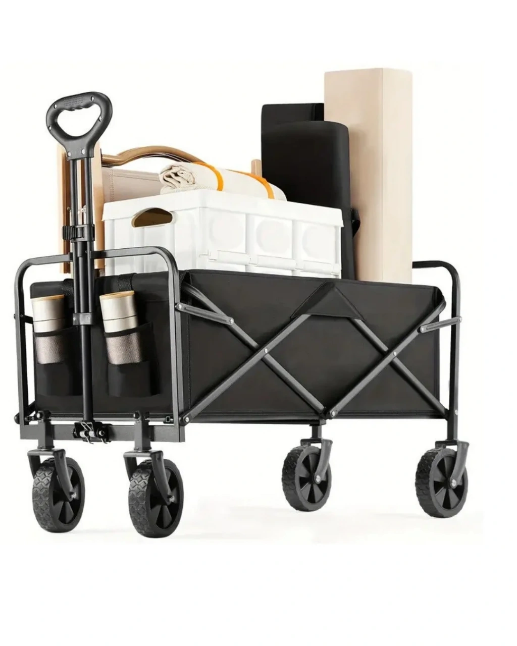 Büyük Kapasiteli Katlanır Kamp Arabası, eşyaların tek seferde ve zahmetsiz şekilde taşınmasını sağlamak aıyla geliştirilmiştir. Kamp, plaj, bahçe ve alışveriş gibi farklı alanlarda kullanıma uygun olan bu vagon, günlük yaşamı kolaylaştıran çok yönlü bir yardımcıdır.Katlanabilir tasarımı, ürünü taşınabilir ve depolanabilir hale getirir. Kullanım sonrasında hızlıca kapatılarak kompakt boyuta ulaşır. Araç bagajında veya evde fazla yer kaplamadan saklanabilir. Kurulum gerektirmemesi sayesinde pratik bir kullanım sunar.Geniş iç alanı ve 74,8 kg taşıma kapasitesi, büyük ve ağır eşyalar için idealdir. Kamp malzemeleri, soğutucu kutular veya bahçe ekipmanları rahatlıkla taşınabilir. Yan cepler küçük eşyaların düzenli biçimde yerleştirilmesine yardımcı olur.360° dönebilen ön tekerlekler, her yönde rahat hareket imkânı tanır. Farklı zemin koşullarında dengeli sürüş sağlar. Ayarlanabilir ve kilitlenebilir kulp, kullanım sırasında kontrol kolaylığı sunar.Dayanıklı çelik iskeleti ve 600D Oxford kumaşı sayesinde uzun süreli kullanım için uygundur. Kumaş çıkarılabilir ve kolay temizlenebilir yapıdadır.Büyük Kapasiteli Katlanır Kamp Arabası, taşıma işlerini daha pratik ve konforlu hale getirmek isteyen kullanıcılar için ideal bir çözümdür.