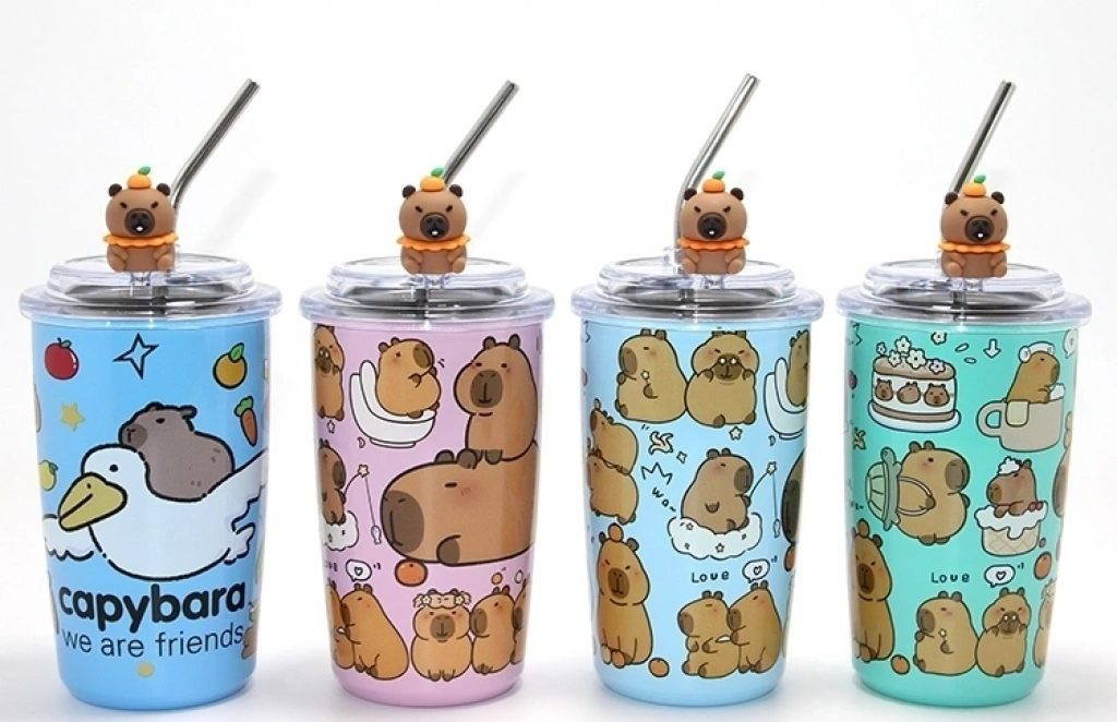 Capybara Figürlü Isı Muhafazalı Metal Pipetli Paslanmaz Çelik Kupa Alk4429