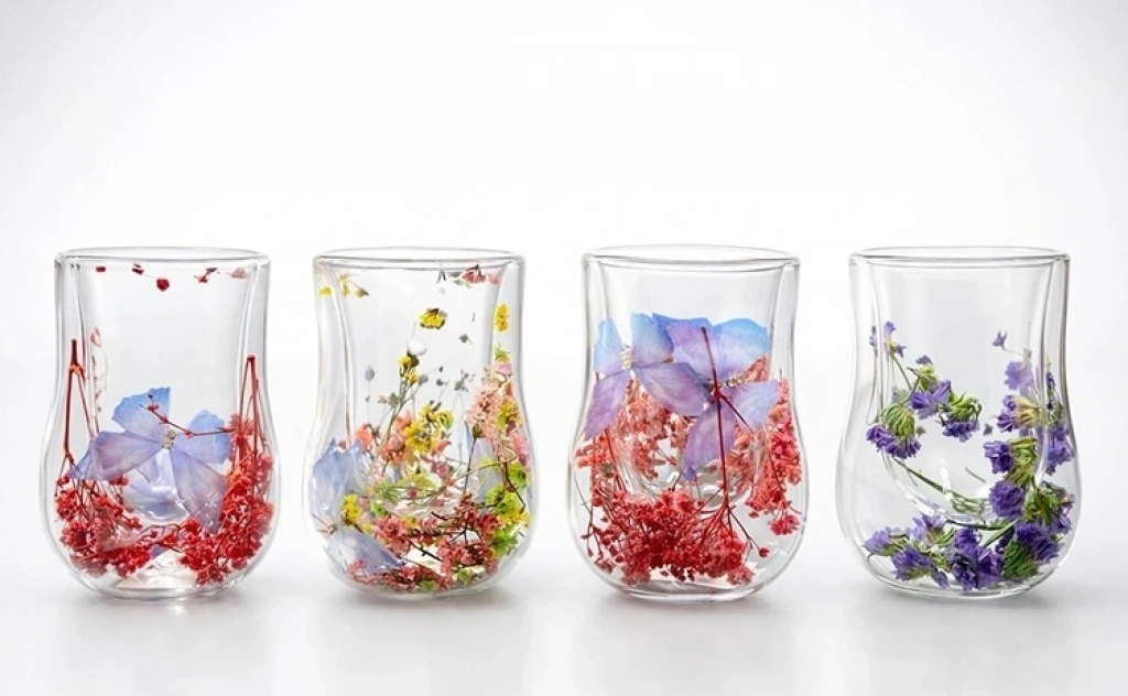 Çift Camlı Çiçekli Kupa Bardak Alk4468
