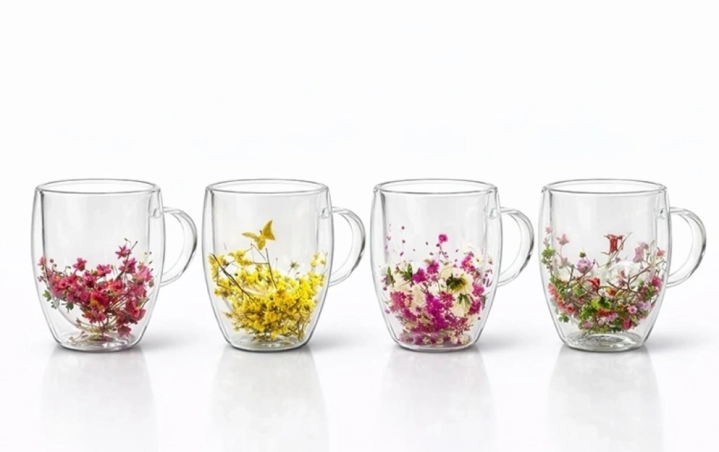Çift Camlı Çiçekli Kupa Bardak Alk4468