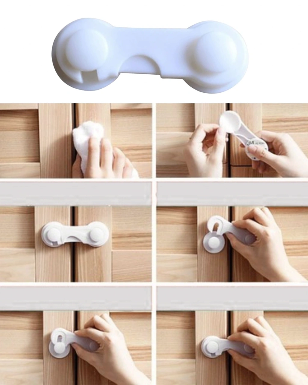 Çocukların dolap ve çekmeceleri açmasını önlemek aıyla üretilen 4 adet dolap güvenlik kilidi, evde güvenli alanlar oluşturur. Vida ve matkap gerektirmeyen yapışkanlı sistemi sayesinde kolayca monte edilir. Sağlam yapısı uzun süreli kullanım sağlar.Keskin kenar içermeyen tasarımı çocuklar için güvenlidir. Farklı yüzeylerde kullanılabilen yapısı ile çok amaçlı kullanım sunar. Sade görünümü sayesinde ev dekorasyonuna uyum sağlar.Ebeveynler için pratik, çocuklar için güvenli bir çözümdür.