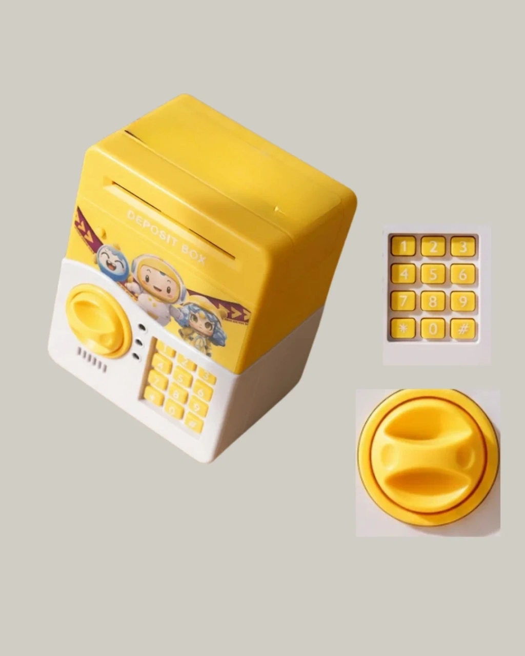 ATM görünümlü bu sarı şifreli çocuk kumbarası, gerçekçi tasarımıyla çocuklara bankamatik deneyimi yaşatır. Otomatik girişi, ışık ve ses efektleri ile birleşerek eğlenceli bir kullanım sunar.Elektronik şifre sistemi sayesinde güvenli saklama alışkanlığı kazandırır. Yüksek kapasiteli iç hacmi, uzun süreli birikim yapmayı mümkün kılar. Sarı rengi, çocuk odalarına neşeli bir hava katar.Dayanıklı yapısı ve eğitici özelliğiyle hem çocuklar hem de ebeveynler için ideal bir üründür.