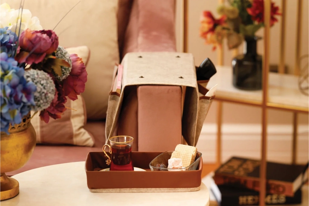 Keçe kumaşı ile koltuk kenarlarına hem şıklık hem düzen katar.