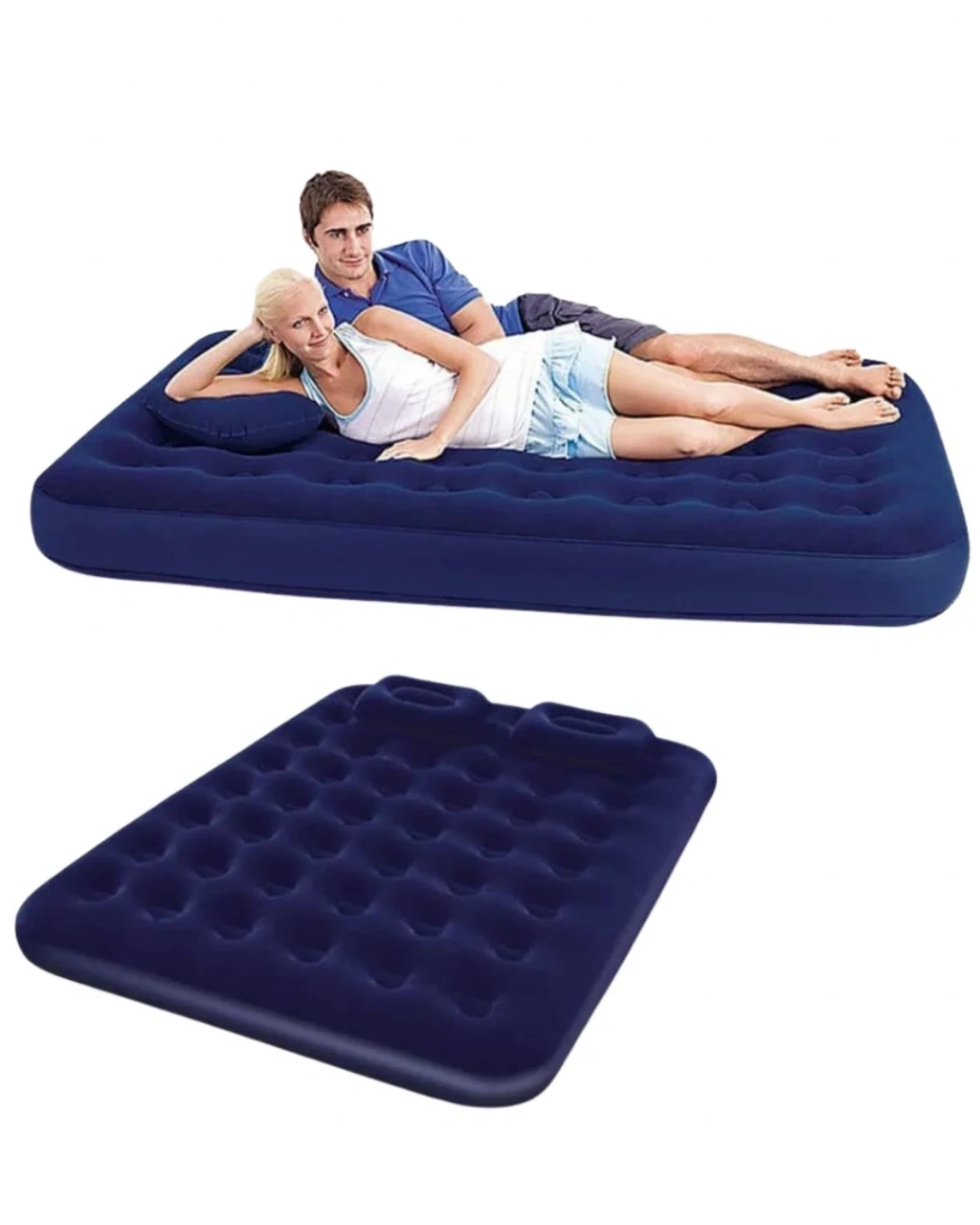 Kamp ve doğa aktiviteleri için ideal olan bu çift kişilik şişme yatak, dayanıklı yapısı ve konforlu yüzeyiyle öne çıkar. Vinil gövdesi, dış mekân koşullarına karşı direnç gösterirken uzun süreli kullanım sağlar. Flokeli üst yüzeyi sayesinde rahat bir uyku deneyimi sunar.Sarmal kirişli iç yapı, yatağın formunu korumasına yardımcı olur ve vücut ağırlığını dengeli şekilde dağıtır. Vidalı vana sistemi ile hızlı şişirme ve boşaltma imkânı sunar. Hem kamp alanlarında hem de ev içinde misafir yatağı olarak rahatlıkla kullanılabilir.
