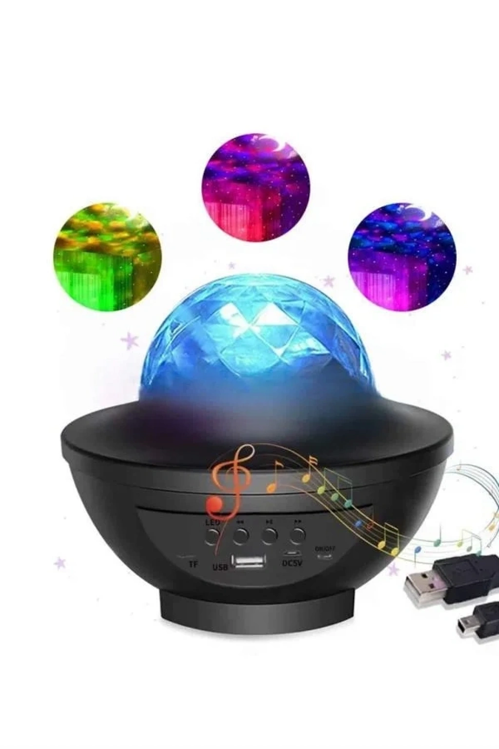 Yıldızlı Gökyüzünü Evinize Taşıyan Dinamik Projeksiyon Gece LambasıHayal gücünü gerçeğe dönüştüren bu dinamik projeksiyon gece lambası, 10 farklı renk rotasyonuyla mavi bulutsu bulutların arasında sürüklenen yıldızlardan oluşan büyüleyici bir evreni odanıza yansıtır. Hem çocuklar hem de yetişkinler için huzur dolu bir ortam yaratan aurora efekti, yatak odasından oturma odasına kadar her mekânda rahatlatıcı bir atmosfer sunar. Gece lambası olarak da kullanılabilen bu ürün, özellikle çocuklar için hem eğlenceli hem de güven verici bir uyku arkadaşı haline gelir.Bluetooth 5.2 Bağlantı ve Sesle Etkileşim ÖzelliğiGelişmiş Bluetooth 5.2 teknolojisi ve USB yuvası sayesinde müzik dinleme deneyimini de bir üst seviyeye taşıyan bu projektör, cihazınıza kolayca bağlanarak favori parçalarınızı çalmanıza olanak tanır. Sesle etkinleştirilen hareket sensörü sayesinde ışıklar, müziğin ritmine veya basitçe alkışlarınıza göre hareket ederek disko ya da parti atmosferi yaratır. Dört temel renk (mavi, kırmızı, yeşil, beyaz) ve çok renkli okyanus dalgası efektleriyle birlikte yıldızlı bir gökyüzü görsel şölenine dönüşür.Uzaktan Kumanda ile Kolay KontrolKullanımı son derece pratik olan uzaktan kumandasıyla ışık modları arasında kolayca geçiş yapabilir, parlaklık seviyesini ayarlayabilir, renk rotasyonlarını kontrol edebilir ya da hareket ve ses ayarlarını dilediğiniz gibi yönetebilirsiniz. Ayrıca 1, 2 veya 3 saatlik otomatik kapanma zamanlayıcı seçenekleriyle, uykuya geçişi destekleyen konforlu bir deneyim sunar.Hayal Gücünü Besleyen Hediye SeçeneğiDoğum günleri, özel günler, yıl dönümleri ya da sadece sevdiklerinizi mutlu etmek için ideal bir hediye seçeneği olan bu galaksi projektörü, çocukların yaratıcılığını ve hayal dünyasını geliştirmeye yardımcı olur. Aynı zamanda romantik bir ortam ışığı, huzurlu bir gece lambası ve etkileyici bir dekoratif ürün olarak da öne çıkar.Okyanus dalgalarının dinginliğiyle yıldızların büyüsünü birleştiren bu projektör, evinizin tavanını bir planetaryuma dönüştürerek sizi gerçeküstü bir gece yolculuğuna davet ediyor.
