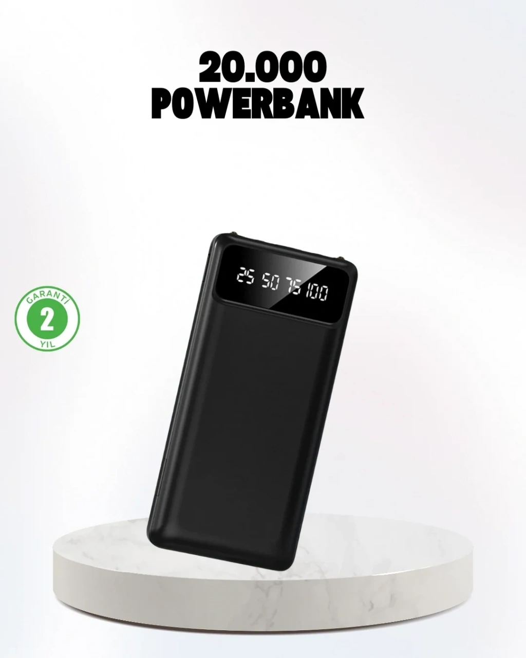 Güçlü 20.000 mAh batarya kapasitesine sahip bu powerbank, yoğun tempoda bile cihazlarınızı her zaman hazır tutar. Hızlı şarj desteği ile telefon ve tabletlerinizi kısa sürede şarj ederek zamandan tasarruf sağlar. 4 çıkışlı yapısı sayesinde aynı anda birden fazla cihazı destekler, özellikle seyahatlerde ve yoğun iş günlerinde hayatı kolaylaştırır.LED ekran göstergesi, şarj durumunu net bir şekilde gösterir. Dahili fener özelliği ile sadece şarj cihazı değil, aynı zamanda pratik bir ışık kaynağıdır. Kompakt boyutları sayesinde çantanıza kolayca sığar ve taşınabilirliğiyle her ortamda kullanım kolaylığı sağlar.Çoklu koruma teknolojisi, aşırı şarj, aşırı akım, voltaj dalgalanmaları ve kısa devrelere karşı güvenli kullanım sunar. Uzun ömürlü ve dayanıklı yapısıyla her an güvenilir enerji kaynağı arayanlar için ideal bir tercihtir.