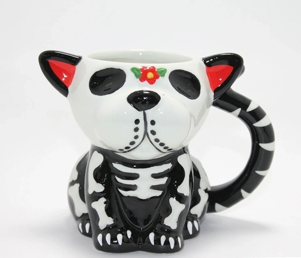 Day Of The Dead Köpek Figürlü 3D Kabartmalı Porselen Kupa Alk4896 Ürün Ölçüleri 12*8.5 Cm