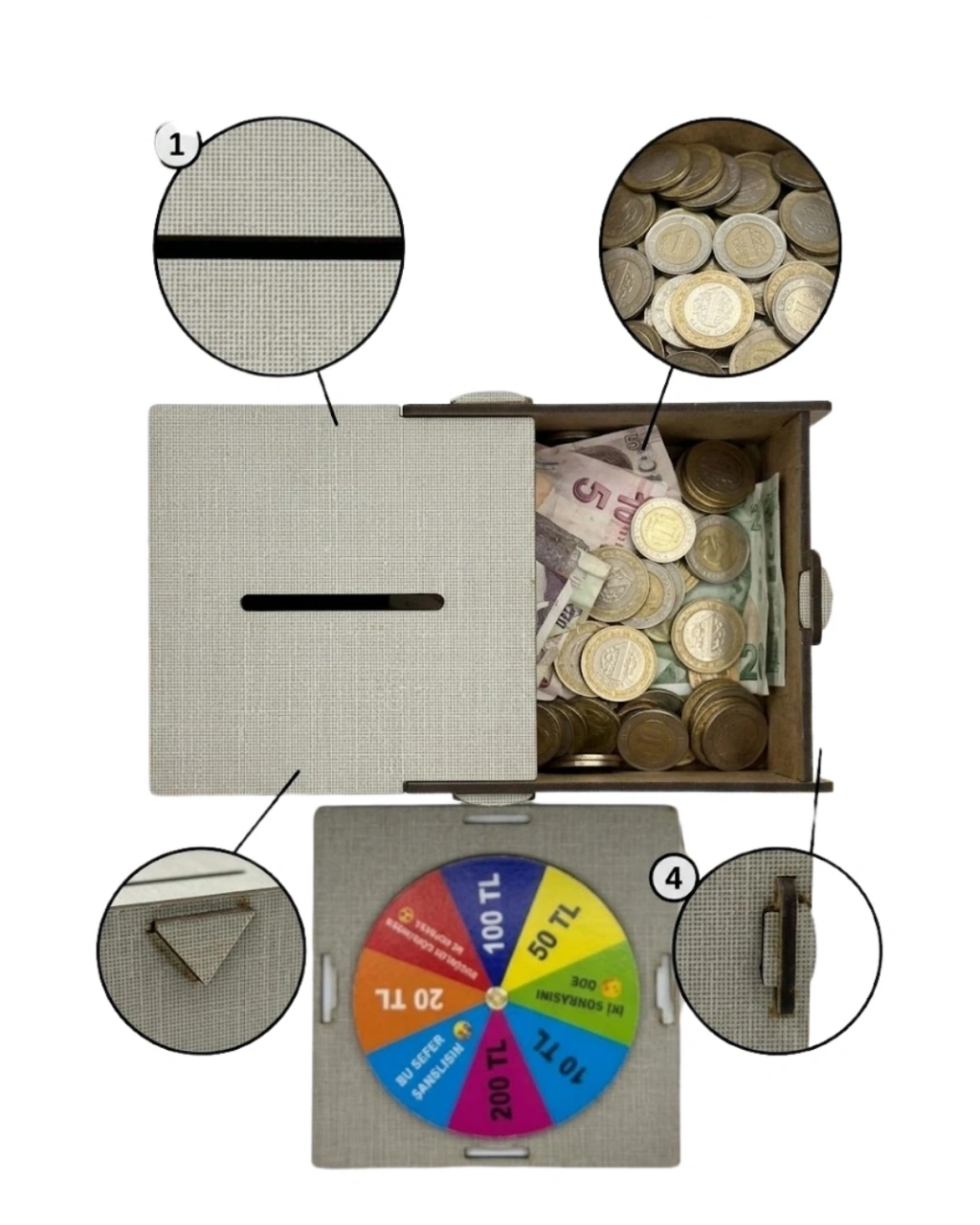 Dekoratif şans çarklı kumbara, hem es hem de işlevsel özellikleri ile öne çıkan bir üründür. Para biriktirme alışkanlığını eğlenceli hale getirerek kullanıcıya farklı bir deneyim sunar.Şans çarkı sayesinde her kullanımda farklı bir sonuç elde edilir. Bu da kullanıcıyı motive eder ve tasarruf sürecini keyifli hale getirir.Geniş iç hacmi ve dayanıklı yapısı sayesinde uzun süreli kullanım sunar.Çocuklar ve yetişkinler için uygundur. Eğlenceli yapısı ile dikkat çeker.Modern tasarımı ile dekoratif bir ürün olarak kullanılabilir.