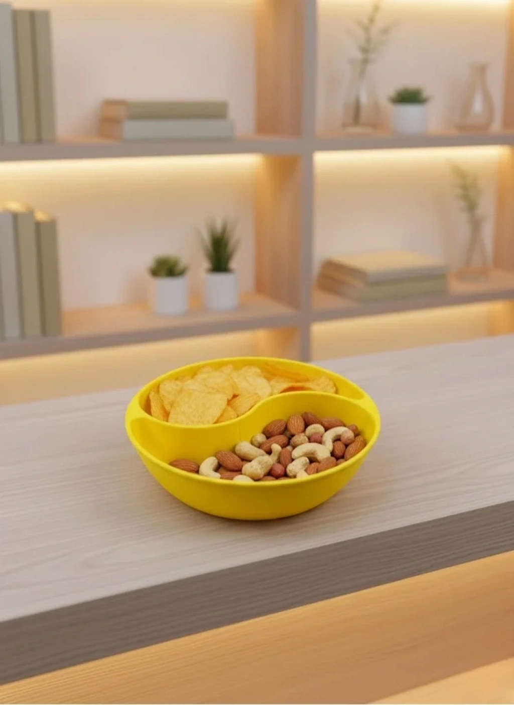 Sarı çerezlik kase seti, sade formu ve canlı rengiyle sunumlarınıza şıklık katmak için tasarlanmıştır. 3x12 cm ölçüsü, çerez ve atıştırmalıklar için yeterli alan sunarken masa üzerinde fazla yer kaplamaz. 4’lü set yapısı sayesinde farklı ikramları aynı anda sunma imkânı sağlar.Bölmeli tasarımı, sunum sırasında düzenli bir görünüm oluşturur. Kuruyemiş, kraker veya küçük atıştırmalıklar ayrı bölmelerde sunularak es bir masa düzeni elde edilir. Sarı rengi, özellikle loş ama aydınlık salon ortamlarında dikkat çekici bir kontrast oluşturur.Salon, sehpa, raf veya masa üstü kullanımına uygundur. Dekoratif görünümü sayesinde yalnızca bir mutfak ürünü değil, aynı zamanda masa düzenini tamamlayan bir aksesuar olarak da kullanılabilir. Günlük kullanımın yanı sıra misafir sofraları için de şık bir alternatiftir.