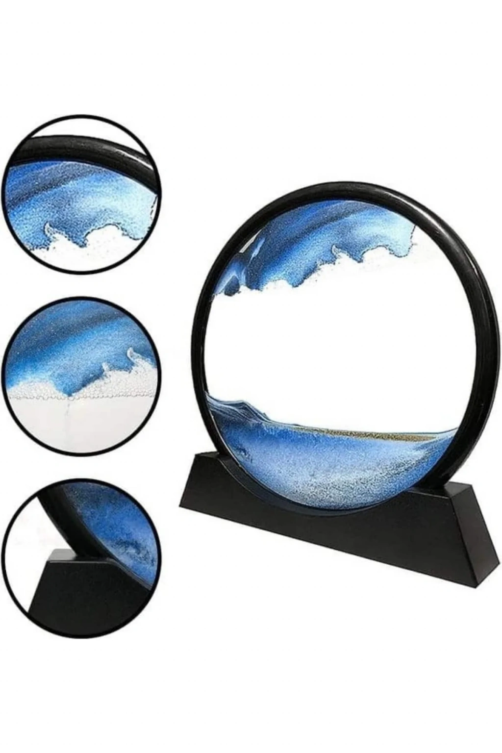 Mekanik detaylarla modern tasarımı bir araya getiren bu 3D LED ışıklı kum saati, sadece bir dekoratif obje olmanın ötesine geçerek bulunduğu ortama zarafet ve huzur katar. Mavi renk temasıyla dinginliği simgelerken, içerisinde bulunan farklı tonlardaki kumların yavaş ve dengeli hareketi izleyiciye adeta hipnotize edici bir seyir sunar. Kumun sıvı içerisinde akışını izlemek, günlük stresinize kısa bir ara vermenize ve rahatlamanıza yardımcı olur.Ürünün dikkat çekici yönlerinden biri de LED aydınlatma özelliğidir. Gece lambası olarak kullanıldığında, yumuşak ve göz yormayan ışığı sayesinde hem dinlendirici bir ambiyans oluşturur hem de gece saatlerinde görsel bir şölen sunar. Kullanılan LED ışıklar uzun ömürlü olup enerji tasarrufu sağlar.Kompakt yapısı ile ev, ofis, çalışma odası, otel lobisi ya da kafe gibi farklı mekanlarda es bir dokunuş sunar. Ayrıca bu ürün, sevdiklerine anlamlı ve farklı bir hediye vermek isteyenler için de ideal bir seçenektir. Kumların yavaşça şekil değiştirerek yeniden desenler oluşturması, her bakışta yeni bir görüntüyle karşılaşmanızı sağlar ve bu özelliğiyle dinamik bir dekor unsuru olur.Sağlam ve kaliteli malzemelerden üretilmiş olan bu tablo, uzun süreli kullanımda bile es görünümünü korur. Üç boyutlu yapısı sayesinde derinlik hissi verir ve bulunduğu ortamda dikkatleri üzerine çeker.Paket İçeriği:1 adet mavi renk 3D LED ışıklı kum saati / gece lambası / dekoratif kum sanatı objesi.